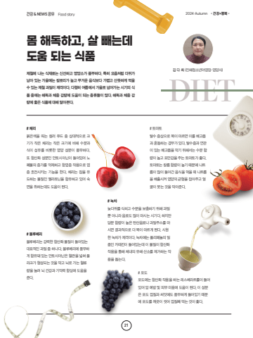 %uac74%uac15 & NEWS %uacf5%uc720 Food story 2024%u00b7Autumn %u2022%uac74%uac15+%ud589%ubcf5%u2022%ubab8 %ud574%ub3c5%ud558%uace0, %uc0b4 %ube7c%ub294%ub370 %ub3c4%uc6c0 %ub418%ub294 %uc2dd%ud488DIET%uc81c%ucca0%uc5d0 %ub098%ub294 %uc2dd%uc7ac%ub8cc%ub294 %uc2e0%uc120%ud558%uace0 %uc601%uc591%uc18c%uac00 %ud48d%ubd80%ud558%ub2e4. %ud2b9%ud788 %uc694%uc998%ucc98%ub7fc %ub354%uc704%uac00 %ub0a8%uc544 %uc788%ub294 %uac00%uc744%uc5d0%ub294 %uce7c%ub85c%ub9ac%uac00 %ub192%uace0 %ubb34%uac70%uc6b4 %uc74c%uc2dd%ubcf4%ub2e4 %uac00%ubccd%uace0 %uc0b0%ub73b%ud558%uac8c %uba39%uc744 %uc218 %uc788%ub294 %uc81c%ucca0 %uacfc%uc77c%uc774 %uc81c%uaca9%uc774%ub2e4. %ub2e4%ud589%ud788 %uc5ec%ub984%uc5d0%uc11c %uac00%uc744%ub85c %ub118%uc5b4%uac00%ub294 %uc2dc%uae30%uc758 %uc2dd%ud488 %uc911%uc5d0%ub294 %ud574%ub3c5%uacfc %uccb4%uc911 %uac10%ub7c9%uc5d0 %ub3c4%uc6c0%uc774 %ub418%ub294 %uc885%ub958%ub4e4%uc774 %ub9ce%ub2e4. %ud574%ub3c5%uacfc %uccb4%uc911 %uac10%ub7c9%uc5d0 %uc88b%uc740 %uc2dd%ud488%uc5d0 %ub300%ud574 %uc54c%uc544%ubcf8%ub2e4.%uae40 %ub2e4 %ud76c (%uc9c4%ud574%uccad%uc18c%ub144%uc57c%uc601%uc7a5%u00b7%uc601%uc591%uc0ac)# %ud3ec%ub3c4%ud3ec%ub3c4%uc5d0%ub294 %ud56d%uc0b0%ud654 %uc791%uc6a9%uc744 %ud558%ub294 %ub808%uc2a4%ubca0%ub77c%ud2b8%ub864%uc774 %ub4e4%uc5b4%uc788%uc5b4 %uc554 %uc608%ubc29 %ubc0f %ud53c%ubd80 %ubbf8%uc6a9%uc5d0 %ub3c4%uc6c0%uc774 %ub41c%ub2e4. %uc774 %uc131%ubd84%uc740 %ud3ec%ub3c4 %uaecd%uc9c8%uacfc %uc528%uc557%uc5d0%ub3c4 %ud48d%ubd80%ud558%uac8c %ub4e4%uc5b4%uc788%uae30 %ub54c%ubb38%uc5d0 %ud3ec%ub3c4%ub97c %uae68%ub057%uc774 %uc53b%uc5b4 %uaecd%uc9c8%uc9f8 %uba39%ub294 %uac83%uc774 %uc88b%ub2e4.# %uccb4%ub9ac %ubd89%uc740%uc0c9%uc744 %ub744%ub294 %uceec%ub7ec %ud478%ub4dc %uc911 %uc0c1%ub300%uc801%uc73c%ub85c %ud06c%uae30%uac00 %uc791%uc740 %uccb4%ub9ac%ub294 %uc791%uc740 %ud06c%uae30%uc5d0 %ube44%ud574 %uc218%ubd84%uacfc %uc2dd%uc774 %uc12c%uc720%ub97c %ube44%ub86f%ud55c %uc601%uc591 %uc131%ubd84%uc774 %ud48d%ubd80%ud558%ub2e4. %ub610 %ud56d%uc0b0%ud654 %uc131%ubd84%uc778 %uc548%ud1a0%uc2dc%uc544%ub2cc%uc774 %ub4e4%uc5b4%uc788%uc5b4 %ub178%ud3d0%ubb3c%uc758 %uc99d%uac00%ub97c %uc5b5%uc81c%ud558%uace0 %ud56d%uc5fc%uc99d %uc791%uc6a9%uc73c%ub85c %uc5fc%uc99d %ud638%uc804%uc2dc%ud0a4%ub294 %uae30%ub2a5%uc744 %ud55c%ub2e4. %uccb4%ub9ac%ub294 %uc7a0%uc744 %uc720%ub3c4%ud558%ub294 %ubb3c%uc9c8%uc778 %uba5c%ub77c%ud1a0%ub2cc%uc744 %ud568%uc720%ud558%uace0 %uc788%uc5b4 %uc219%uba74%uc744 %ucde8%ud558%ub294%ub370%ub3c4 %ub3c4%uc6c0%uc774 %ub41c%ub2e4.# %ube14%ub8e8%ubca0%ub9ac%ube14%ub8e8%ubca0%ub9ac%ub294 %uac15%ub825%ud55c %ud56d%uc0b0%ud654 %ubb3c%uc9c8%uc774 %ub4e4%uc5b4%uc788%ub294 %ub300%ud45c%uc801%uc778 %uacfc%uc77c %uc911 %ud558%ub098%ub2e4. %ube14%ub8e8%ubca0%ub9ac%uc5d0 %ud48d%ubd80%ud558%uac8c %ud568%uc720%ub3fc %uc788%ub294 %uc548%ud1a0%uc2dc%uc544%ub2cc%uc740 %ud608%uad00%uc744 %ub113%ud600 %ud50c%ub77c%ud06c%uac00 %ud615%uc131%ub418%ub294 %uac83%uc744 %ub9c9%uace0 %ub1cc%ub85c %uac00%ub294 %ud608%ub958%ub7c9%uc744 %ub298%ub824 %ub1cc %uac74%uac15%uacfc %uae30%uc5b5%ub825 %ud5a5%uc0c1%uc5d0 %ub3c4%uc6c0%uc744 %uc900%ub2e4.# %ub179%ucc28%ub2a6%ub354%uc704%ub97c %uc2dd%ud788%uace0 %uc218%ubd84%uc744 %ubcf4%ucda9%ud558%uae30 %uc704%ud574 %uacfc%uc77c%ubfd0 %uc544%ub2c8%ub77c %uc74c%ub8cc%ub3c4 %ub9ce%uc774 %ub9c8%uc2dc%ub294 %uc2dc%uae30%ub2e4. %ud558%uc9c0%ub9cc %ub2f9%ubd84 %ud568%ub7c9%uc774 %ub192%uc740 %ud0c4%uc0b0%uc74c%ub8cc%ub098 %uacfc%uc77c%uc8fc%uc2a4%ub97c %ub9c8%uc2dc%uba74 %uacb0%uacfc%uc801%uc73c%ub85c %ub354 %ubaa9%uc774 %ub9c8%ub974%uac8c %ub41c%ub2e4. %uc2dc%uc6d0%ud55c %ub179%ucc28%uac00 %uc81c%uaca9%uc774%ub2e4. %ub179%ucc28%uc5d0%ub294 %ud3f4%ub9ac%ud398%ub180%uc758 %uc77c%uc885%uc778 %uce74%ud14c%ud0a8%uc774 %ub4e4%uc5b4%uc788%ub294%ub370 %uc774 %ubb3c%uc9c8%uc774 %ud56d%uc0b0%ud654 %uc791%uc6a9%uc744 %ud1b5%ud574 %uccb4%ub0b4%uc758 %uc720%ud574 %uc0b0%uc18c%ub97c %uc81c%uac70%ud558%ub294 %uc791%uc6a9%uc744 %ub3d5%ub294%ub2e4.# %ud1a0%ub9c8%ud1a0%ud0c8%uc218 %uc99d%uc0c1%uc73c%ub85c %ubaa9%uc774 %ub9c8%ub974%uba74 %uc774%ub97c %ubc30%uace0%ud514%uacfc %ud63c%ub3d9%ud558%ub294 %uacbd%uc6b0%uac00 %uc788%ub2e4. %ud0c8%uc218%uc99d%uacfc %uc5f0%uad00%uc774 %uc788%ub294 %ubc30%uace0%ud514%uc744 %ub9c9%uae30 %uc704%ud574%uc11c%ub294 %uc218%ubd84 %ud568%ub7c9%uc774 %ub192%uace0 %ud3ec%ub9cc%uac10%uc744 %uc8fc%ub294 %ud1a0%ub9c8%ud1a0%uac00 %uc88b%ub2e4. %ud1a0%ub9c8%ud1a0%ub294 %uce7c%ub968 %ud568%ub7c9%uc774 %ub192%uae30 %ub54c%ubb38%uc5d0 %ub098%ud2b8%ub968%uc774 %ub9ce%uc774 %ub4e4%uc5b4%uac04 %uc74c%uc2dd%uc744 %uba39%uc744 %ub54c %ub098%ud2b8%ub968%uc744 %ubc30%ucd9c%uc2dc%ucf1c %uc601%uc591%uc758 %uade0%ud615%uc744 %uc7a1%uc544%uc8fc%uace0 %uc5bc%uad74%uc774 %ubd93%ub294 %uac83%uc744 %ub9c9%uc544%uc900%ub2e4.21