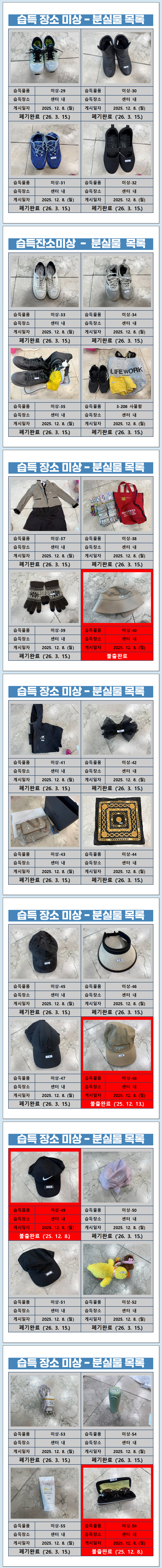 습득장소 미상 - 분실물 목록 (2025)_③ / '26. 3. 15. (일) 폐기 완료