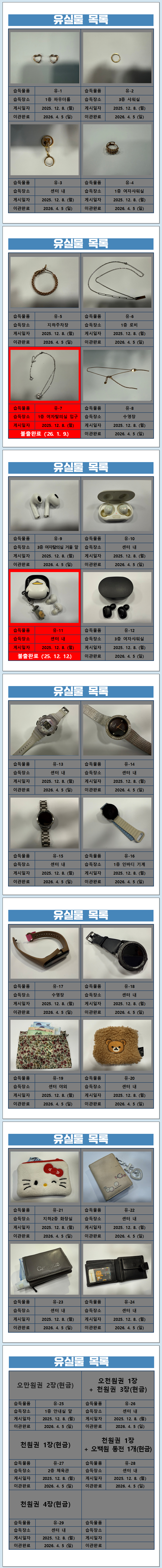 습득장소 미상 - 분실물 목록 (2025)_③ / '26. 3. 15. (일) 폐기 완료
