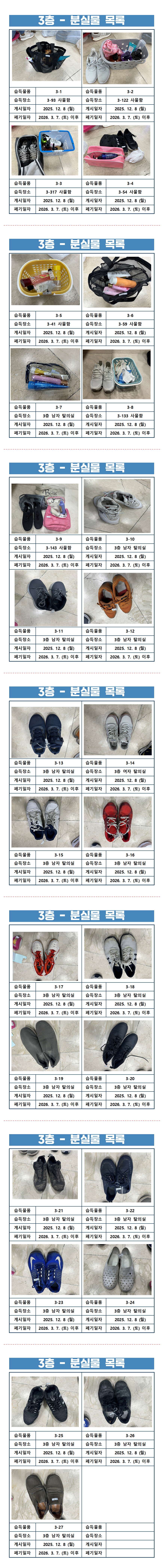3층 - 분실물 목록 (2025) 입니다.