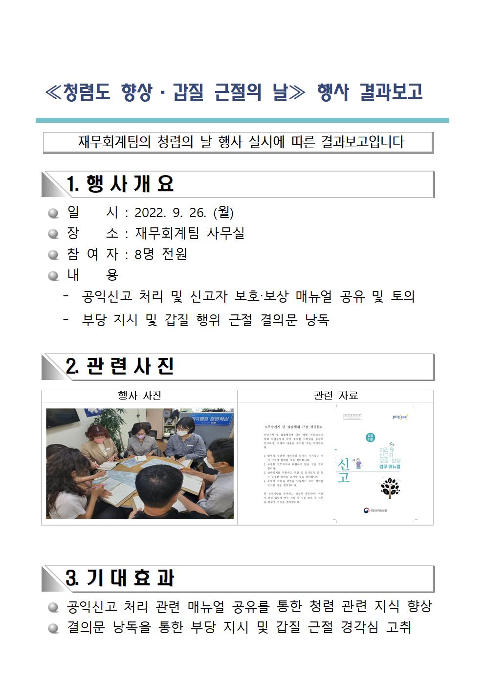 [재무회계팀] 9월 청렴의 날 행사 결과보고 상세보기