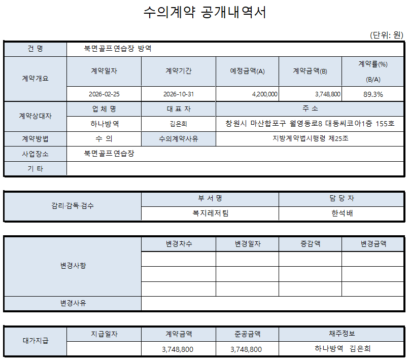 북면골프연습장 방역 용역