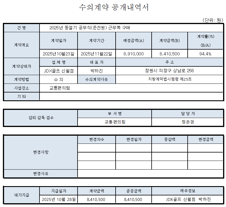 [교통편의팀] 2025년 동절기 공무직(운전원) 근무복 구매