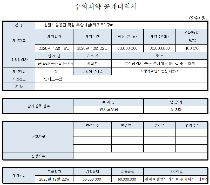 [인사노무팀] 창원시설공단 직원 휴양시설(리조트) 구매