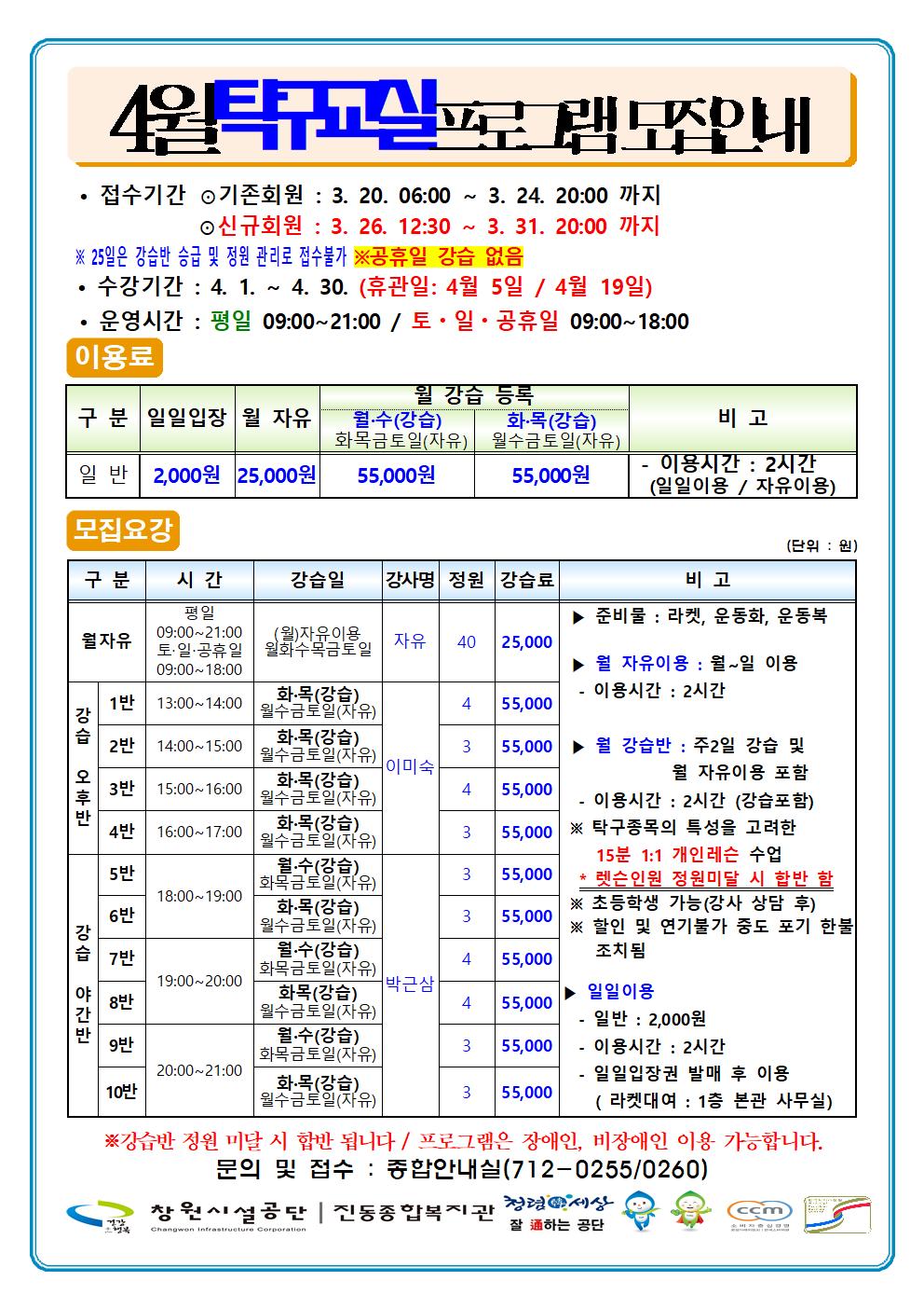 4월 프로그램 운영 안내