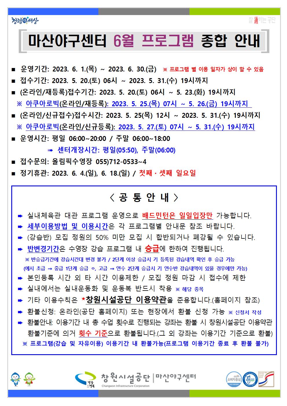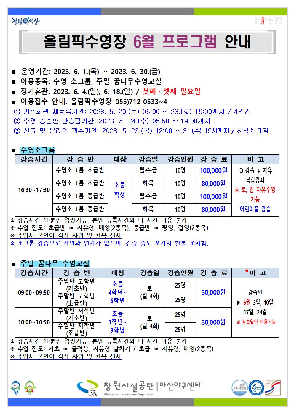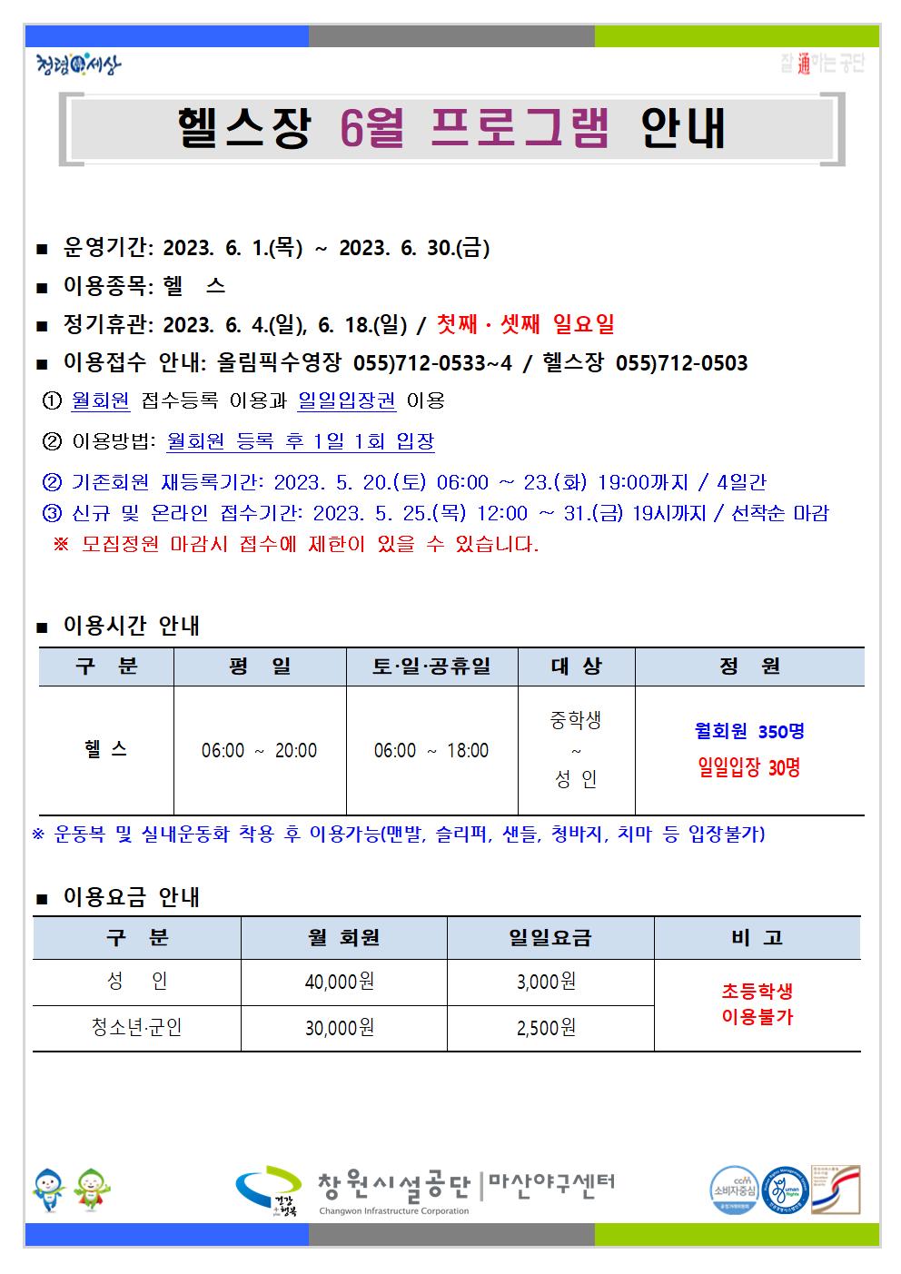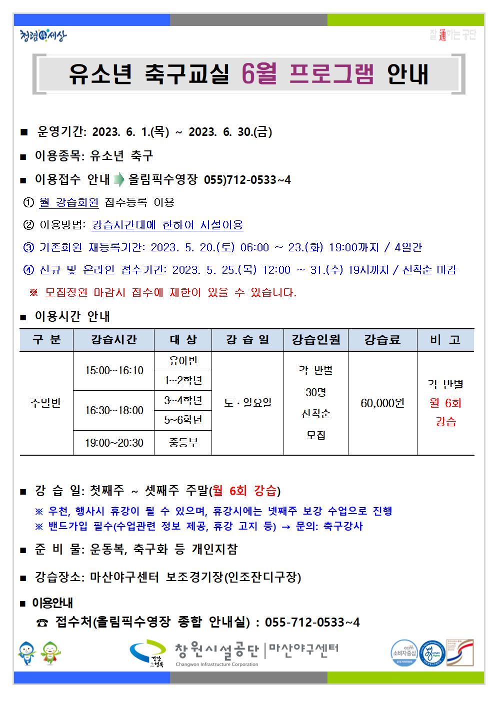 2023년 6월 프로그램 운영안내(축구교실, 헬스)