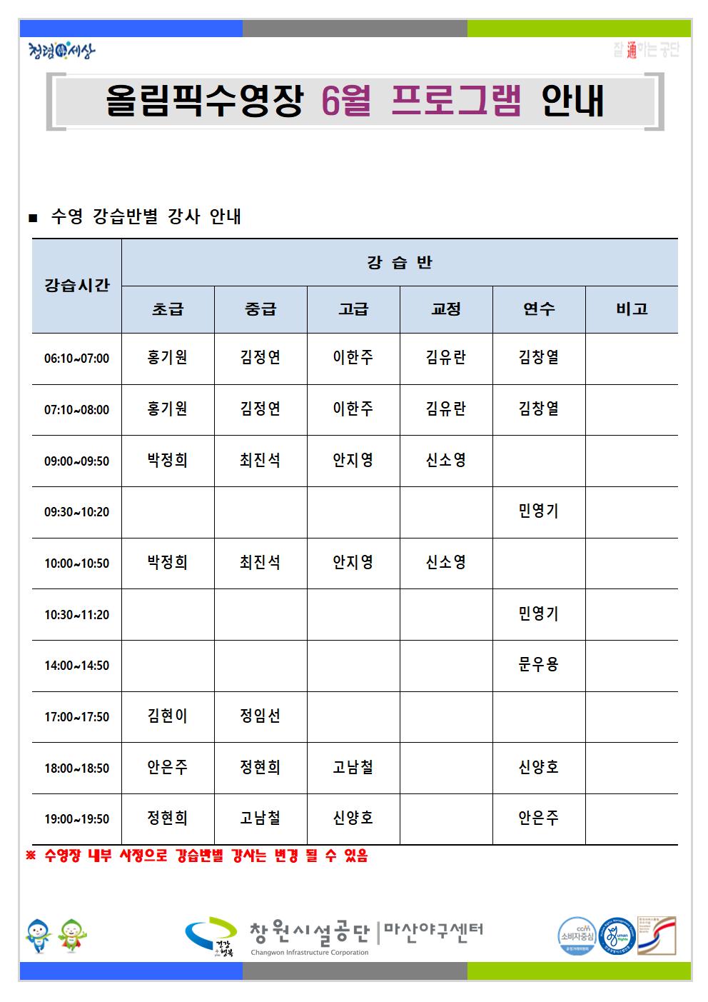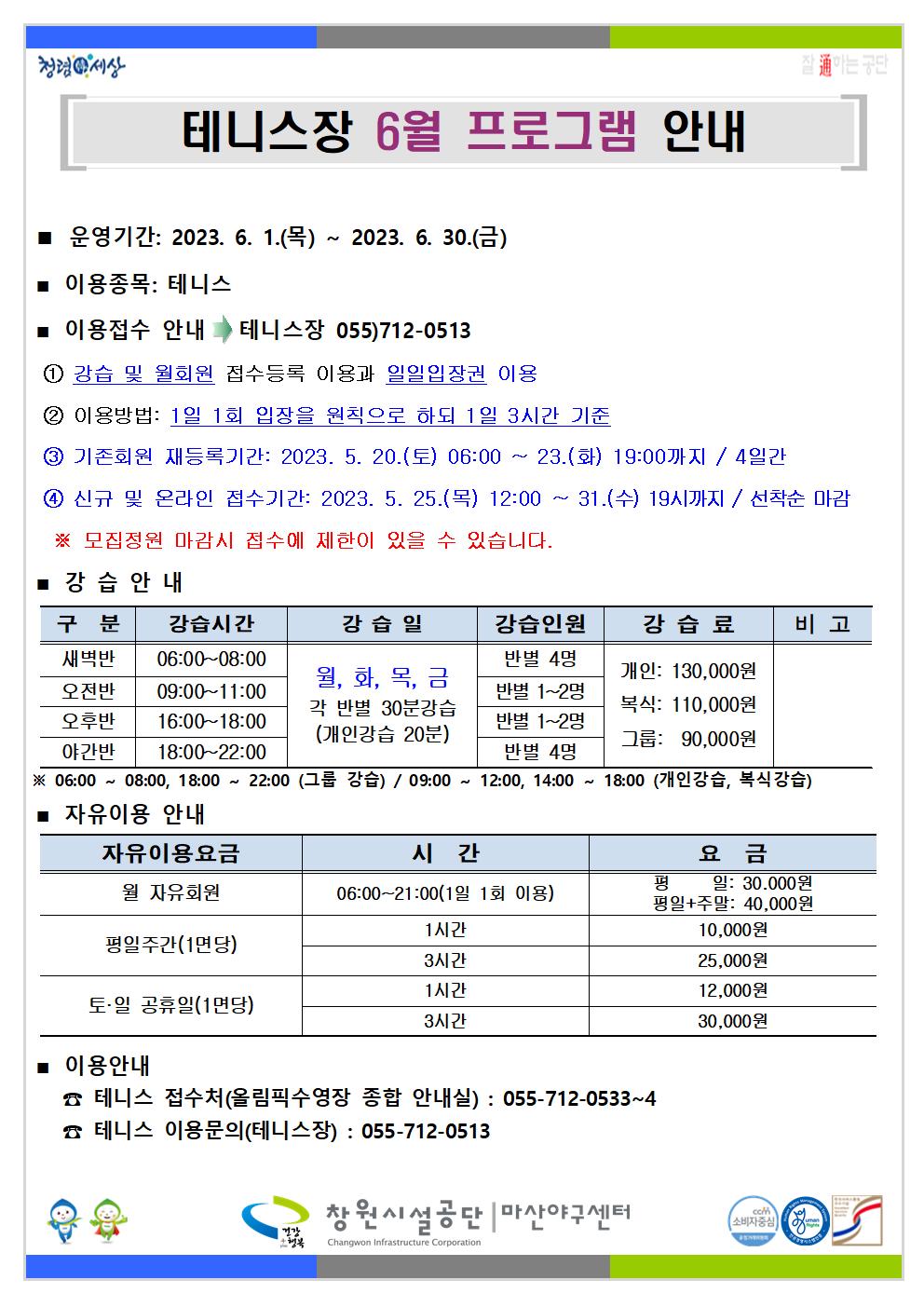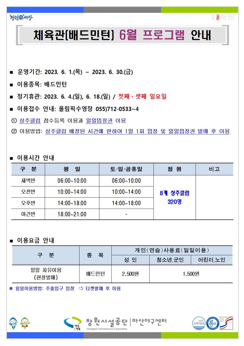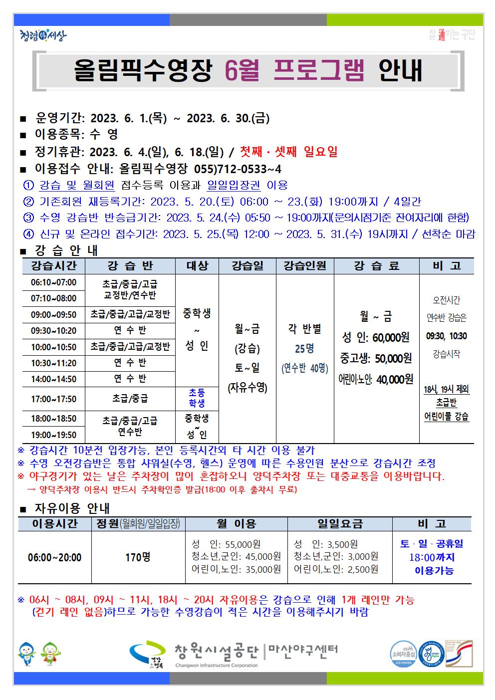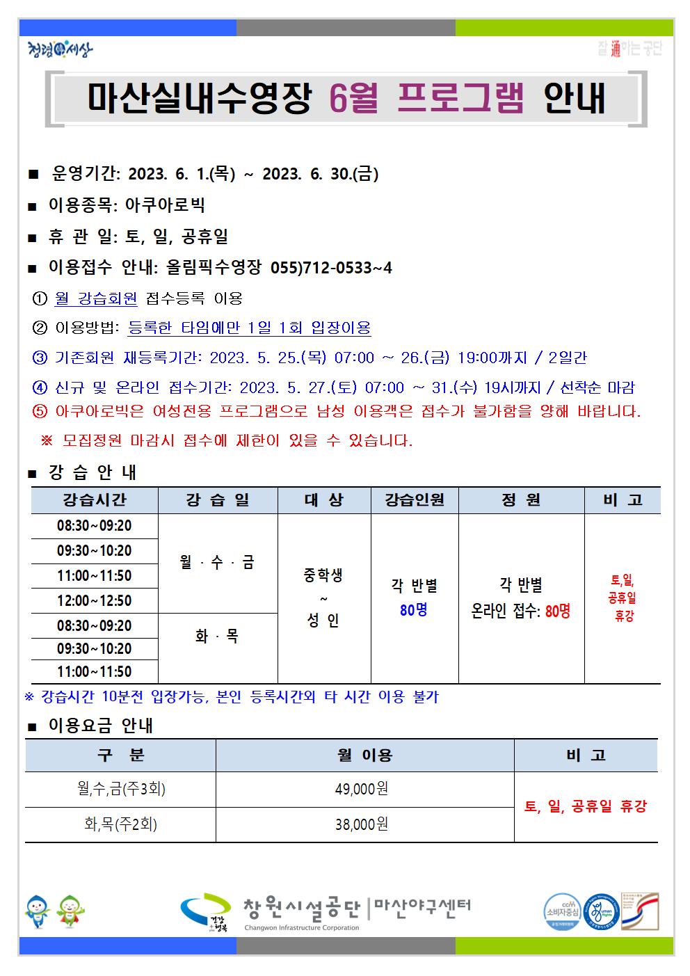2023년 6월 프로그램 운영안내(축구교실, 헬스)