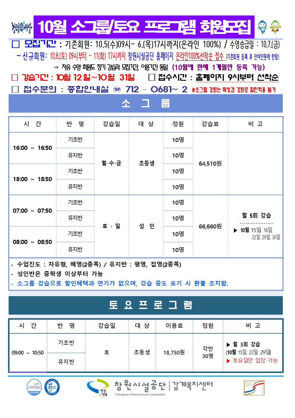 감계복지센터 재개장 및 10월 회원모집 안내 상세보기