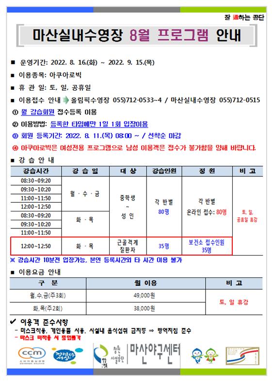 마산합포노인복지관 2022년 하반기(8~12월) 사회교육 프로그램 개강일 안내