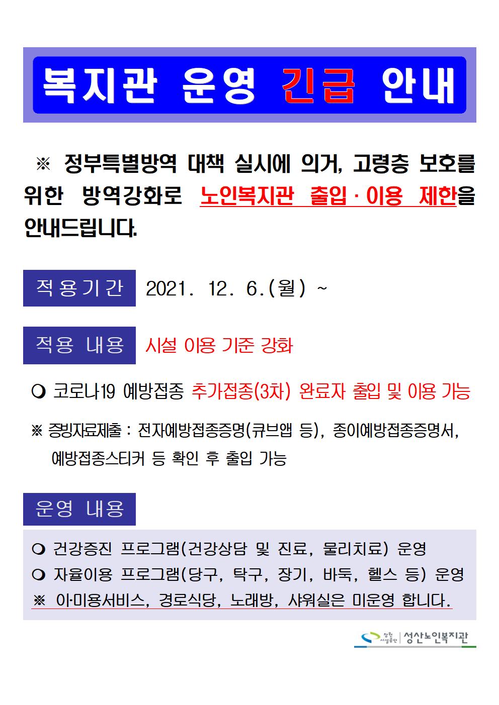 고령층 보호를 위한 노인복지관 운영 긴급 안내