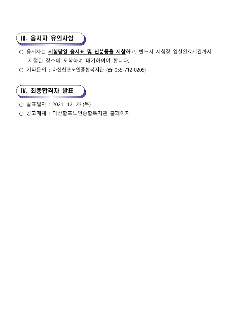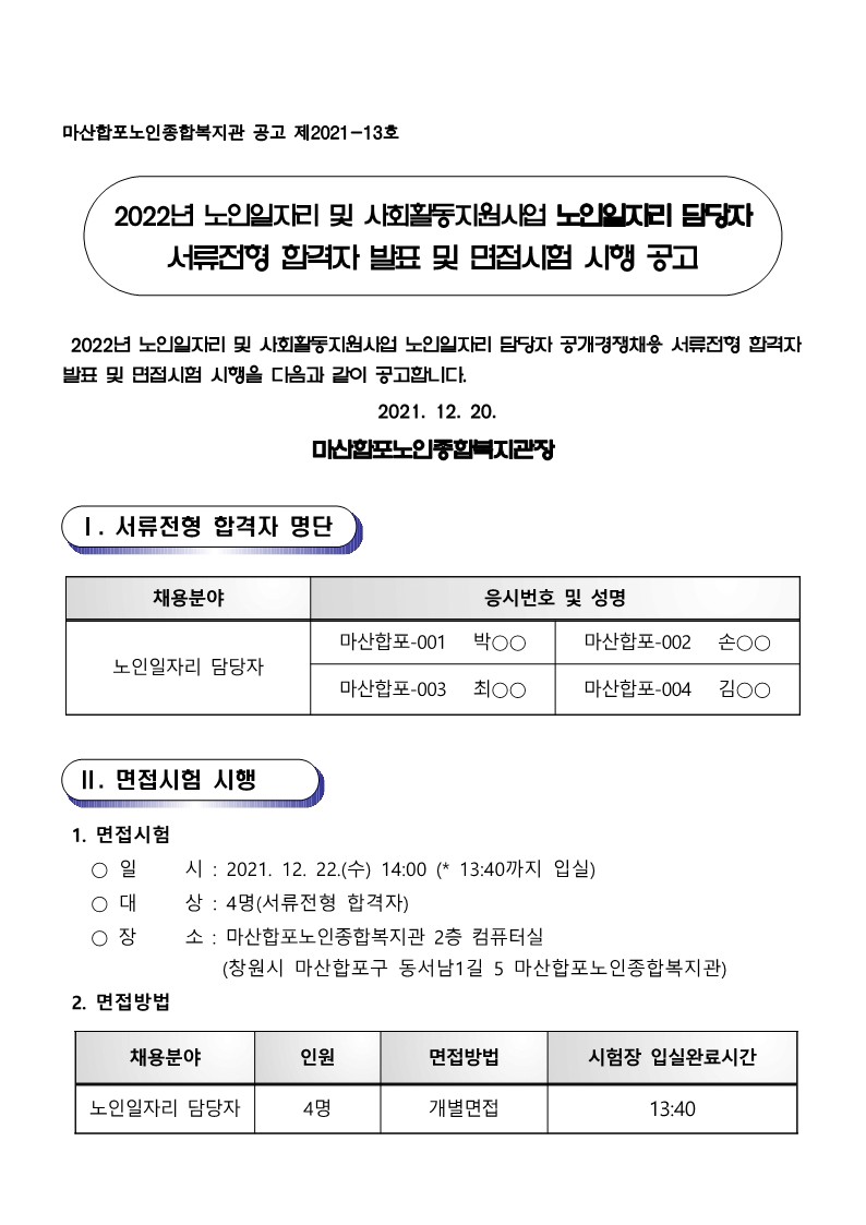 2022년 노인일자리담당자 채용 서류전형 합격자 발표 및 면접시험 시행 공고