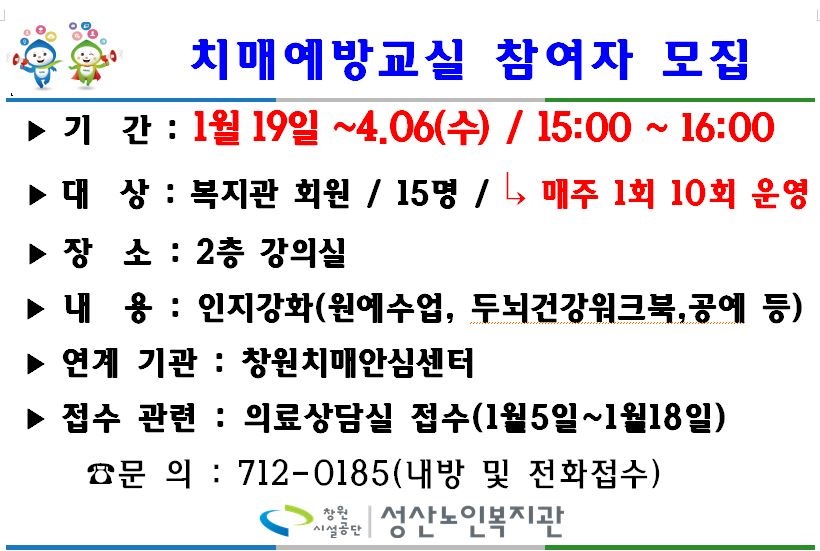 두뇌건강교실을 통해 활기찬 노후를 지원코자 합니다.