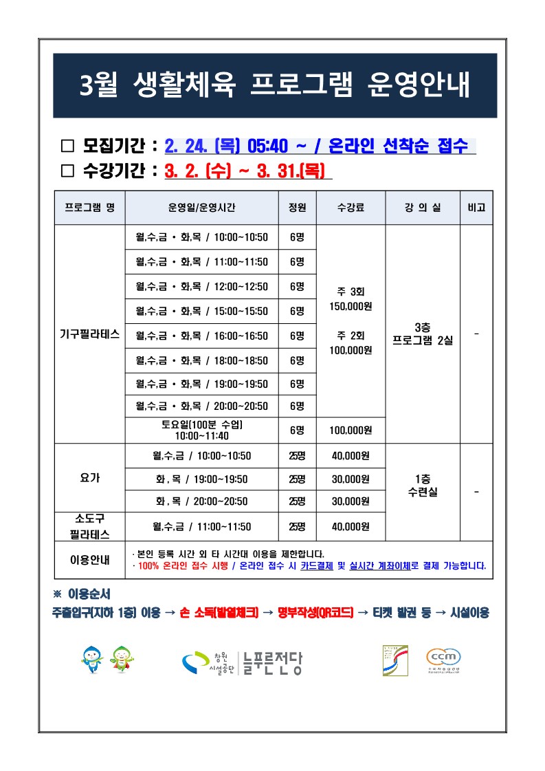2022년 3월 운영 안내(수영, 헬스, 체육관, 생활체육) 상세보기