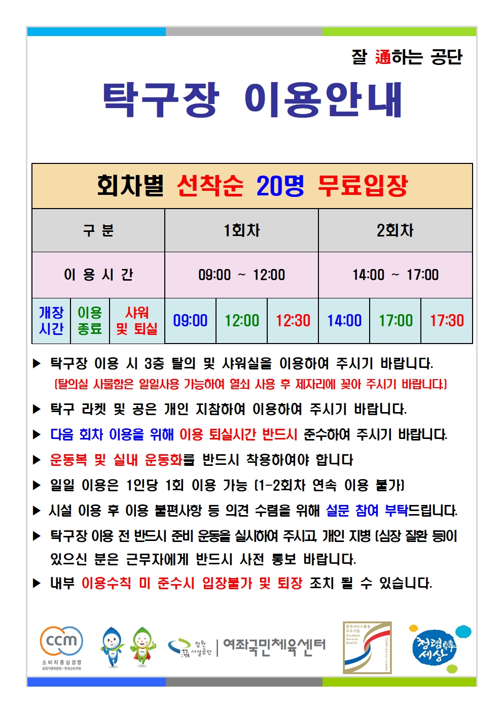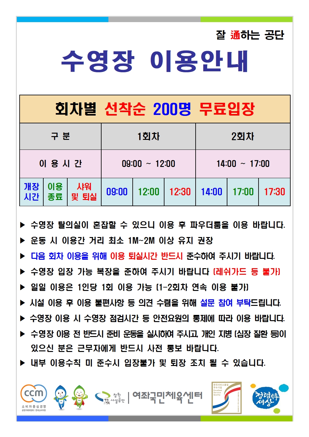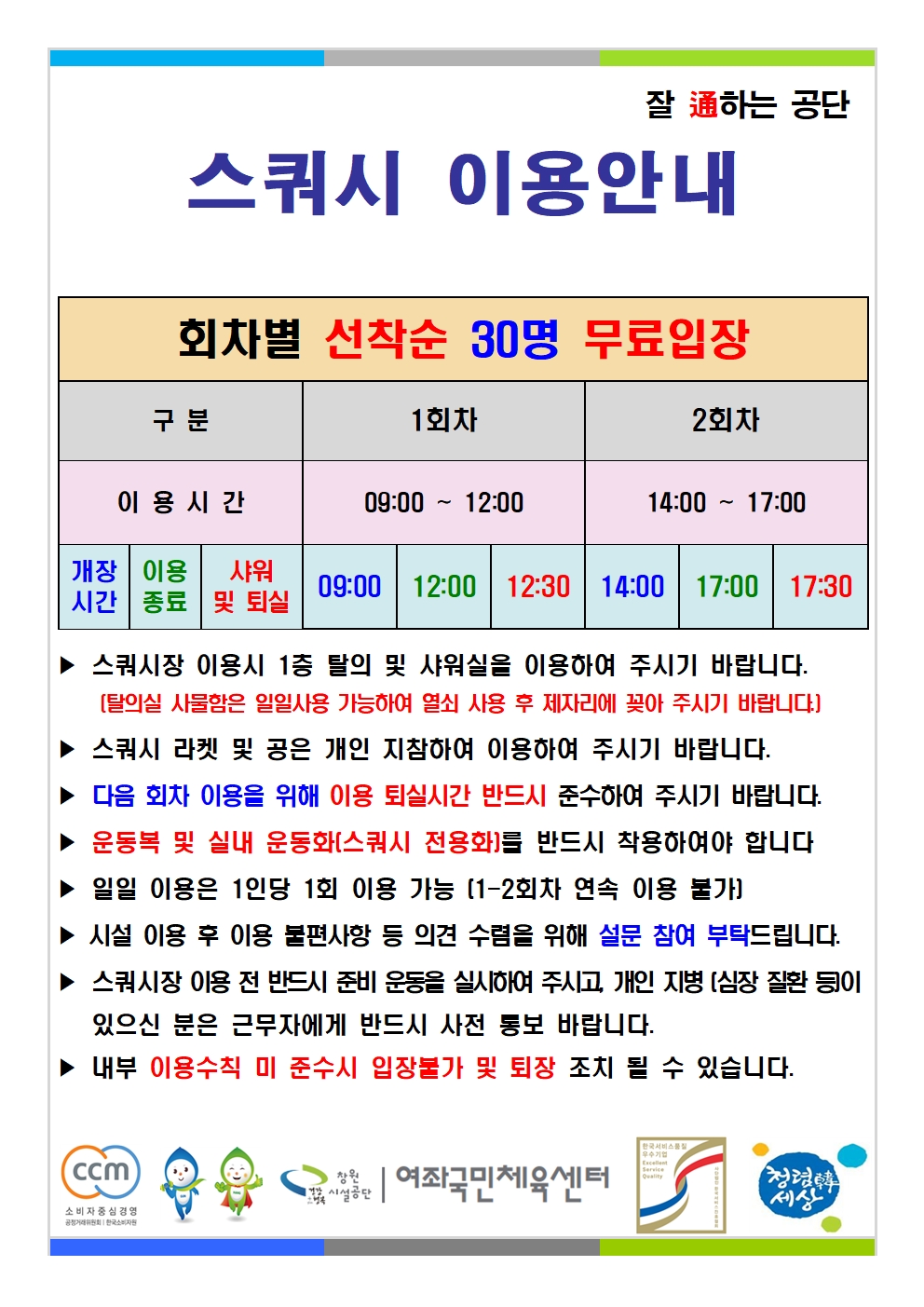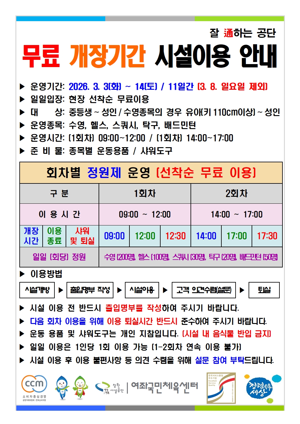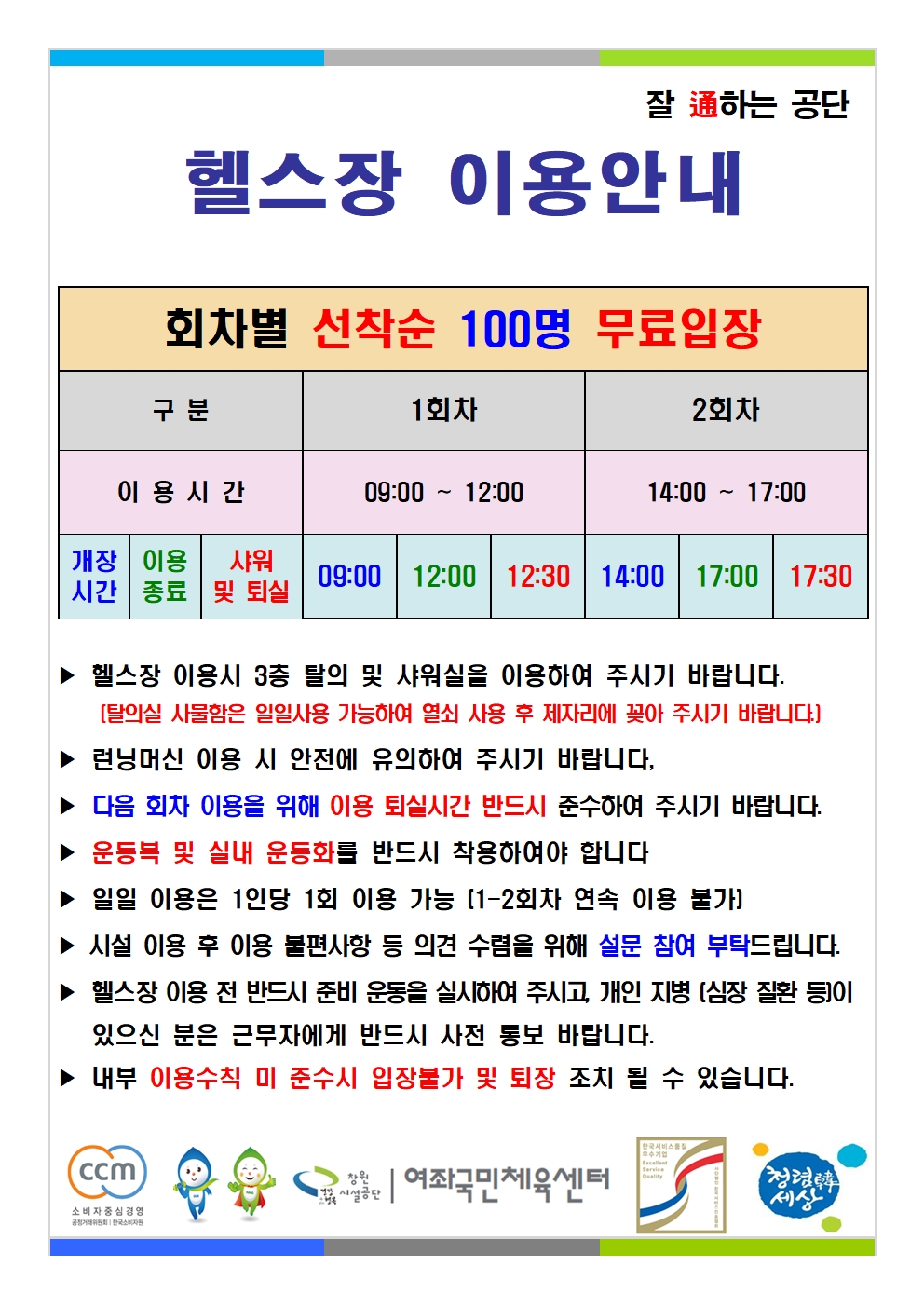 여좌국민체육센터 무료개장 안내입니다.