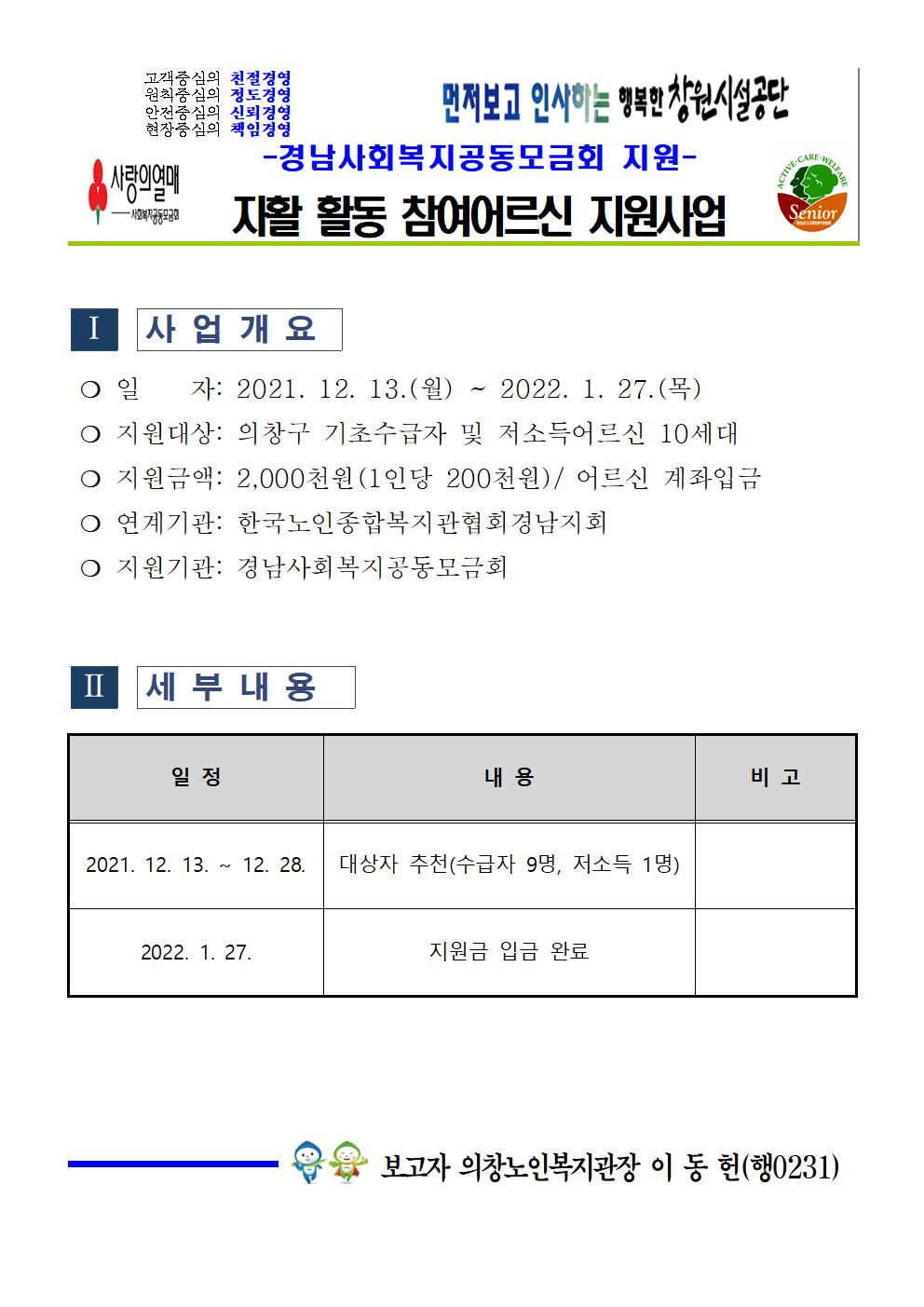 경남사회복지공동모금회 지원 '자활 활동 참여어르신 지원사업' 안내