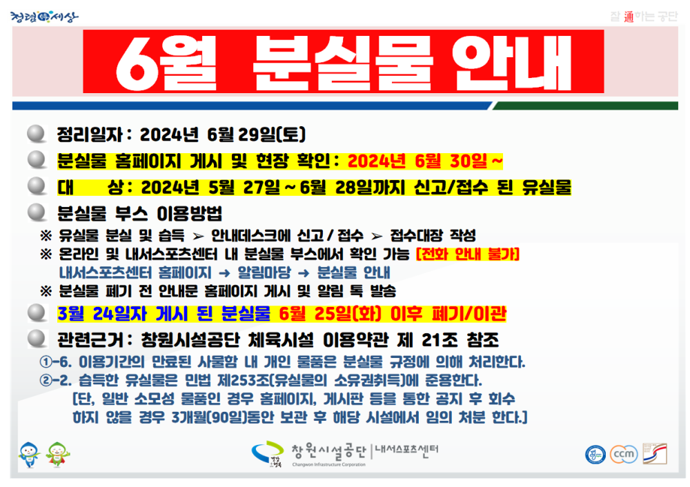 내서스포츠센터 > 분실물 안내 > ('24. 5. 27. ~ 6. 28.) 6월 분실물 현황 / 2024. 9. 29.(일) 폐기 예정 (cwsisul.or.kr)