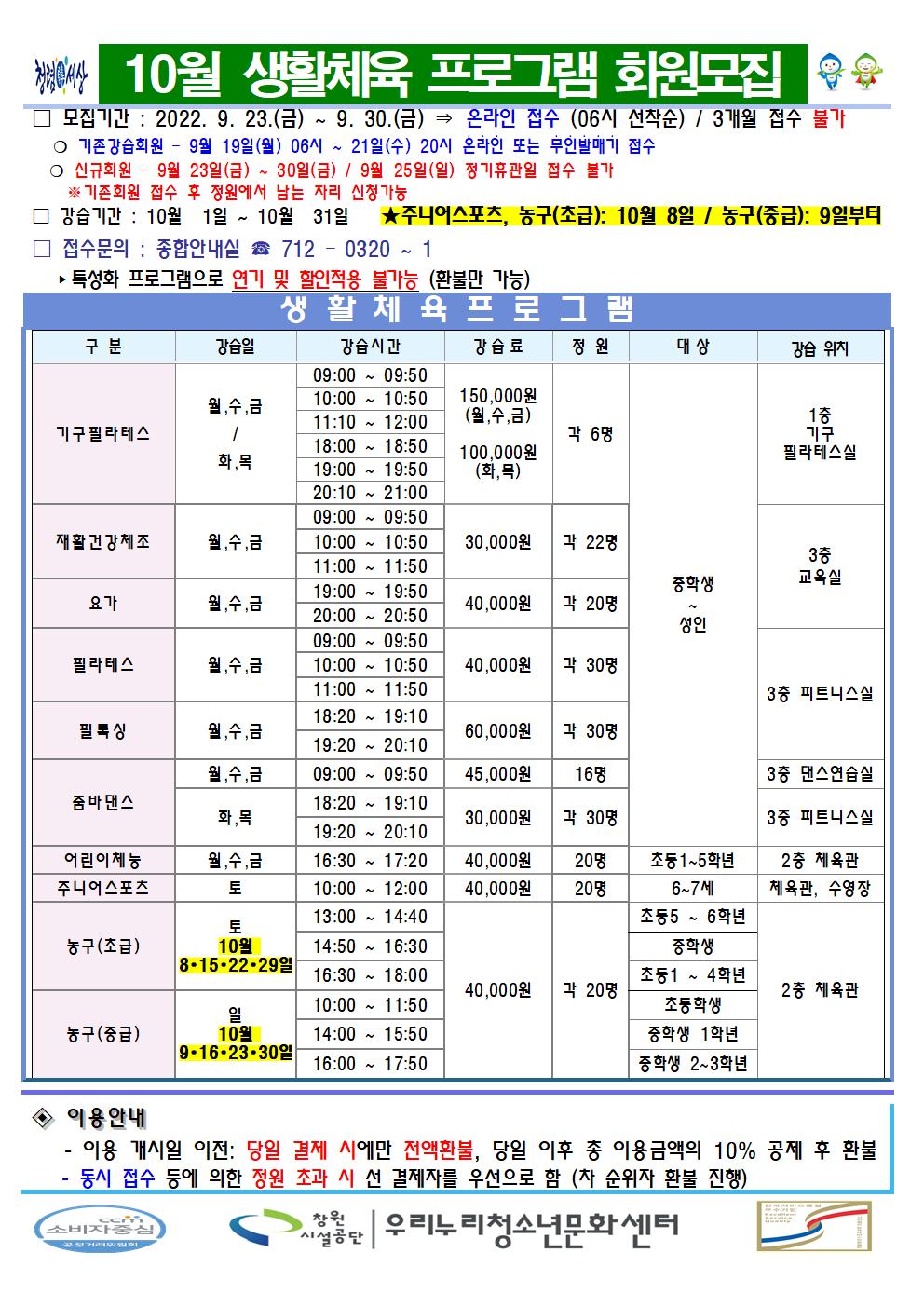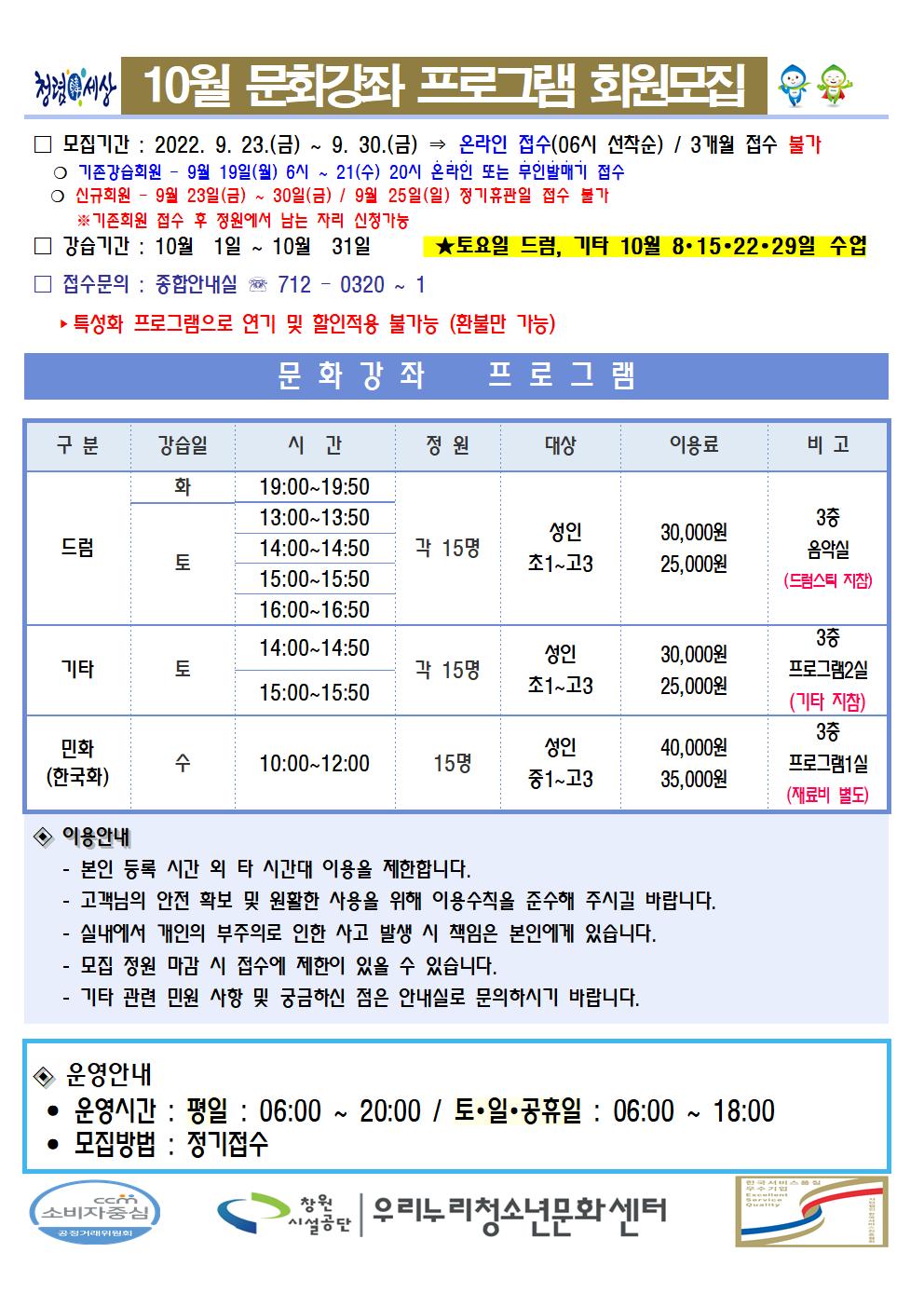10월 프로그램 수정게시 (문화강좌 민화 이용료 변경)