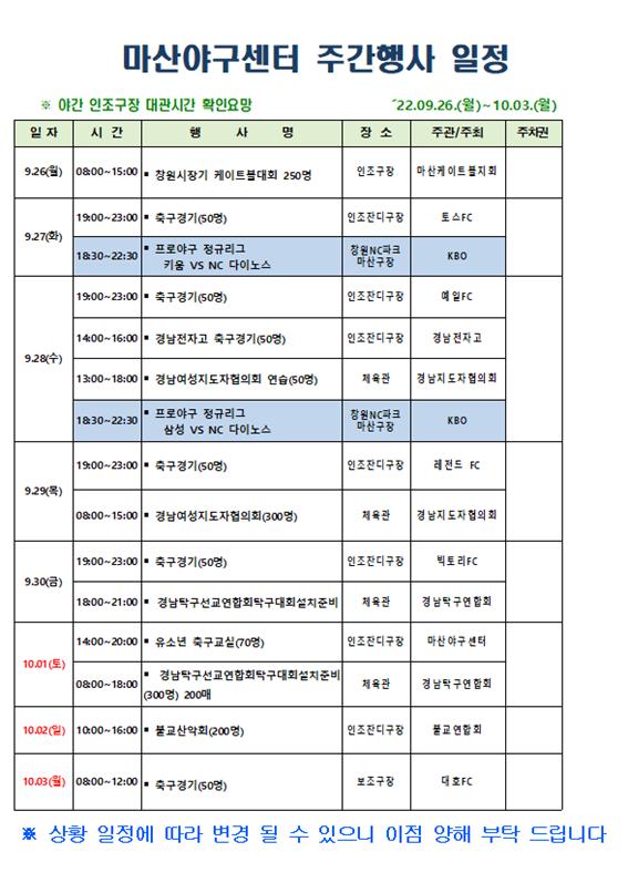 11월 늘푸른전당 체육관 이용 대관 추첨 공지