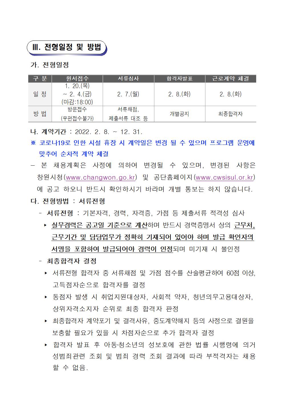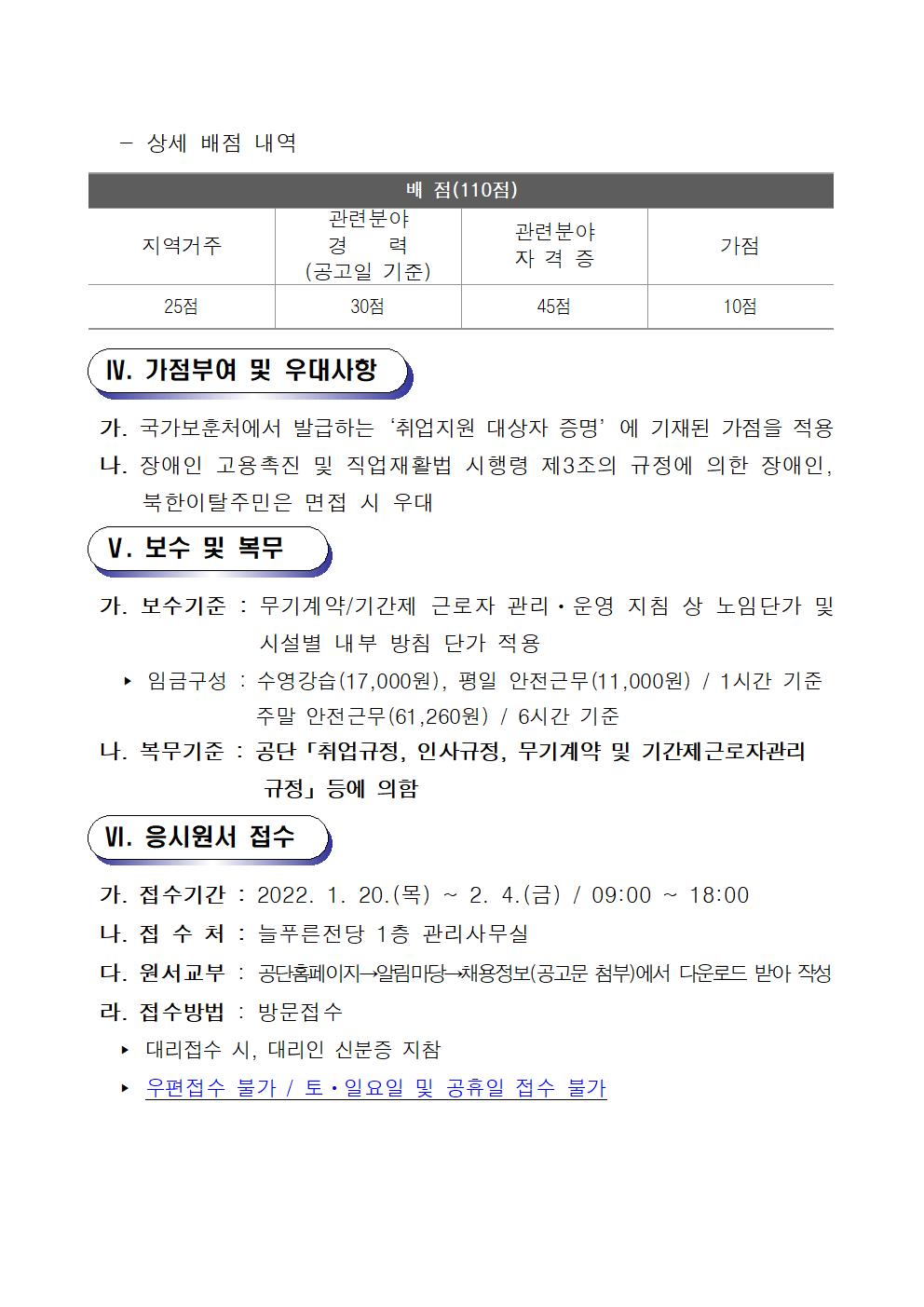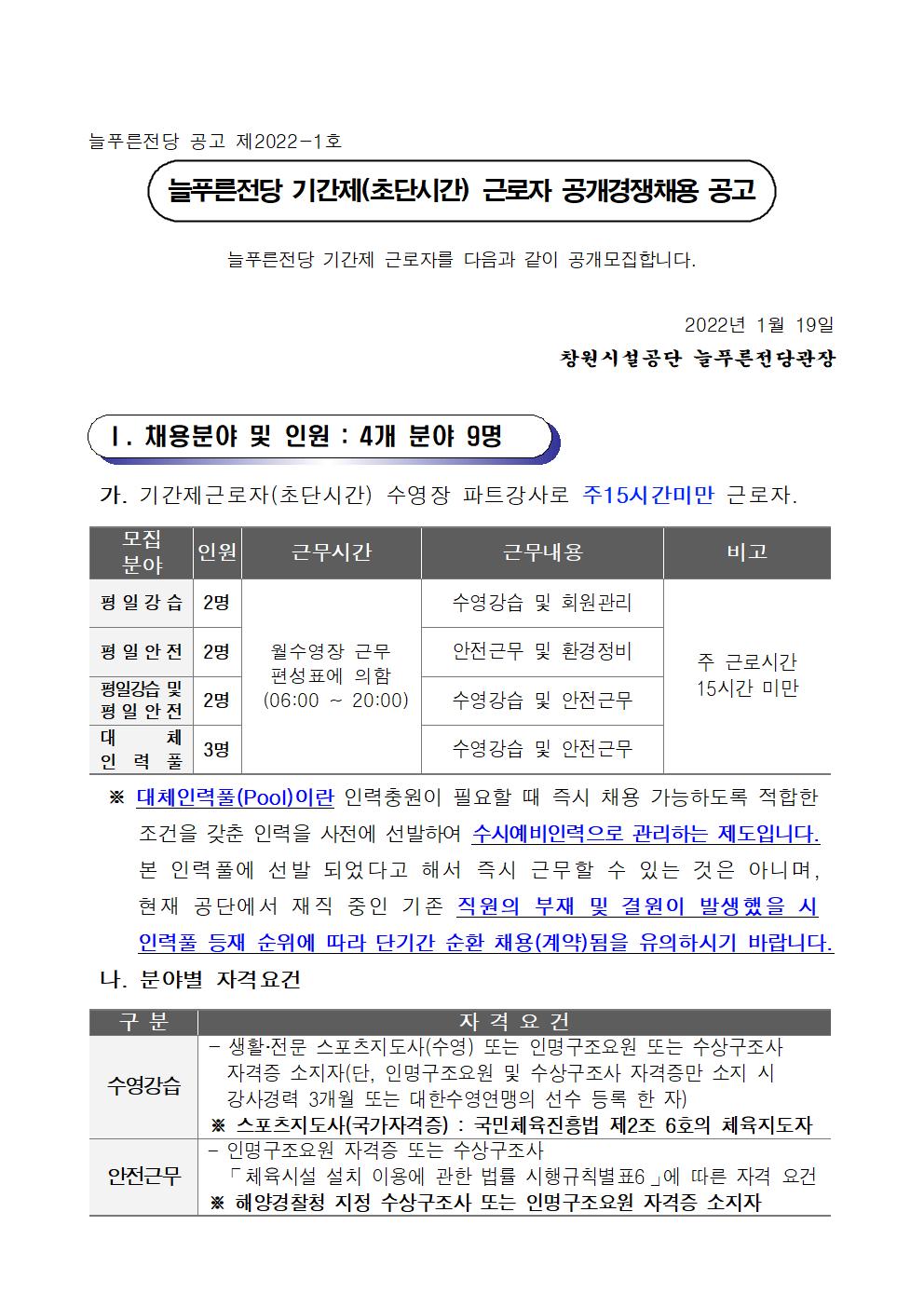 늘푸른전당 기간제(초단시간) 근로자 공개경쟁채용 공고