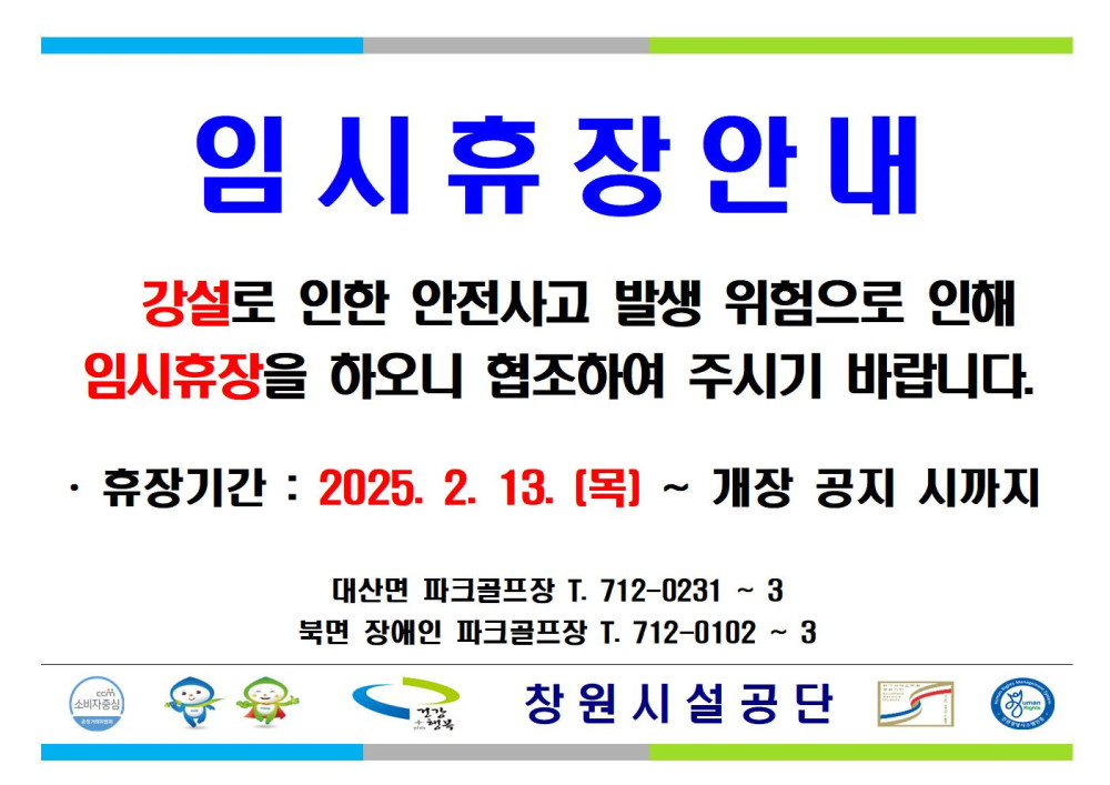파크골프장 임시휴장 안내