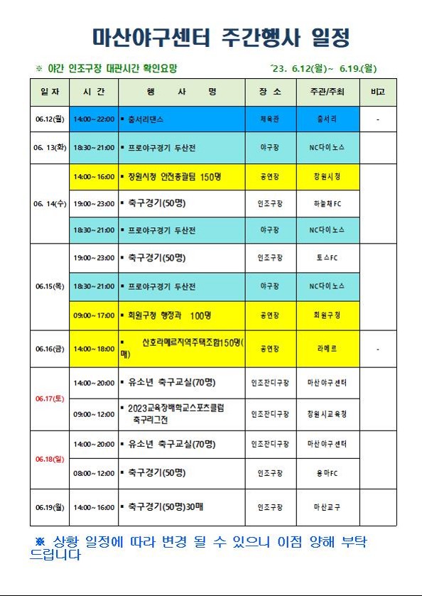 마산야구센터 CCTV 추가 및 이전 설치를 위한 행정예고 결과 공고