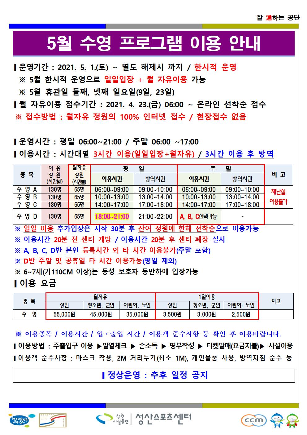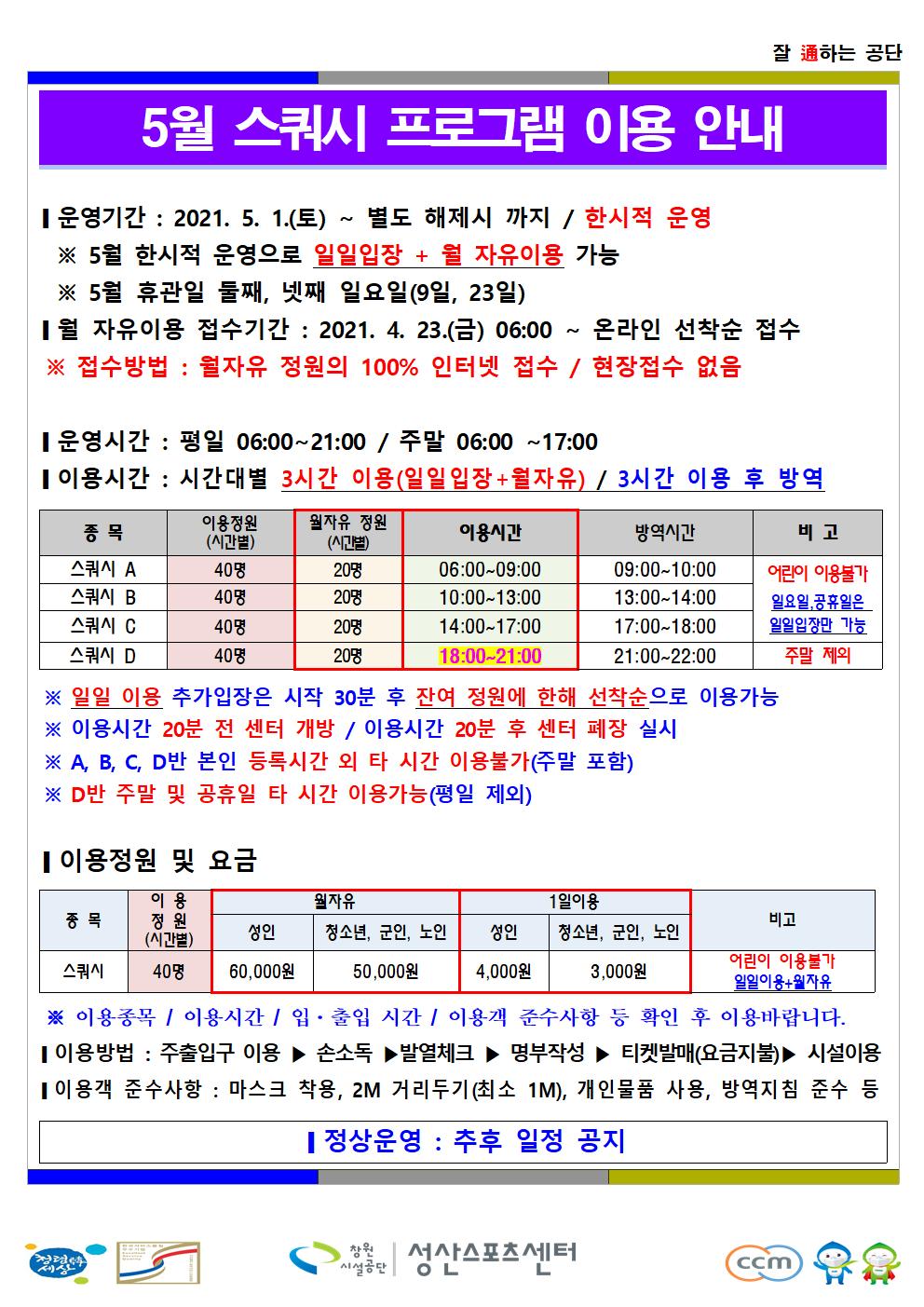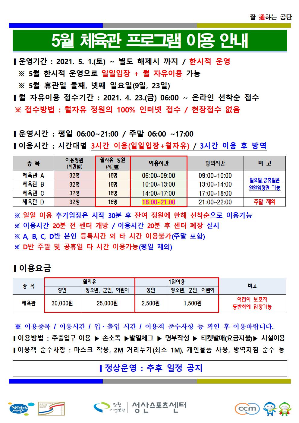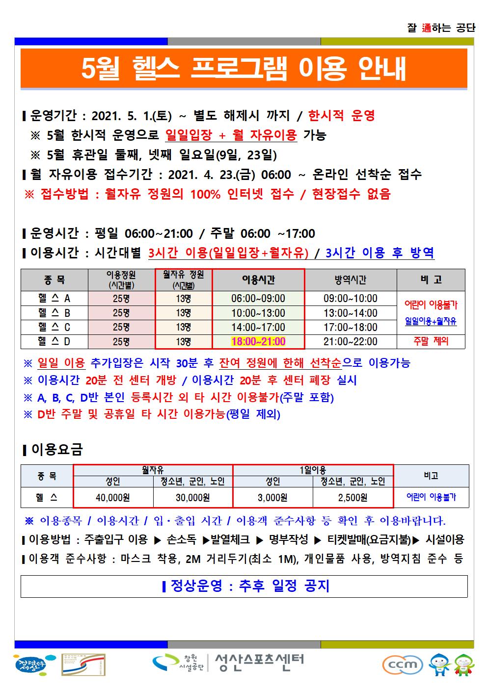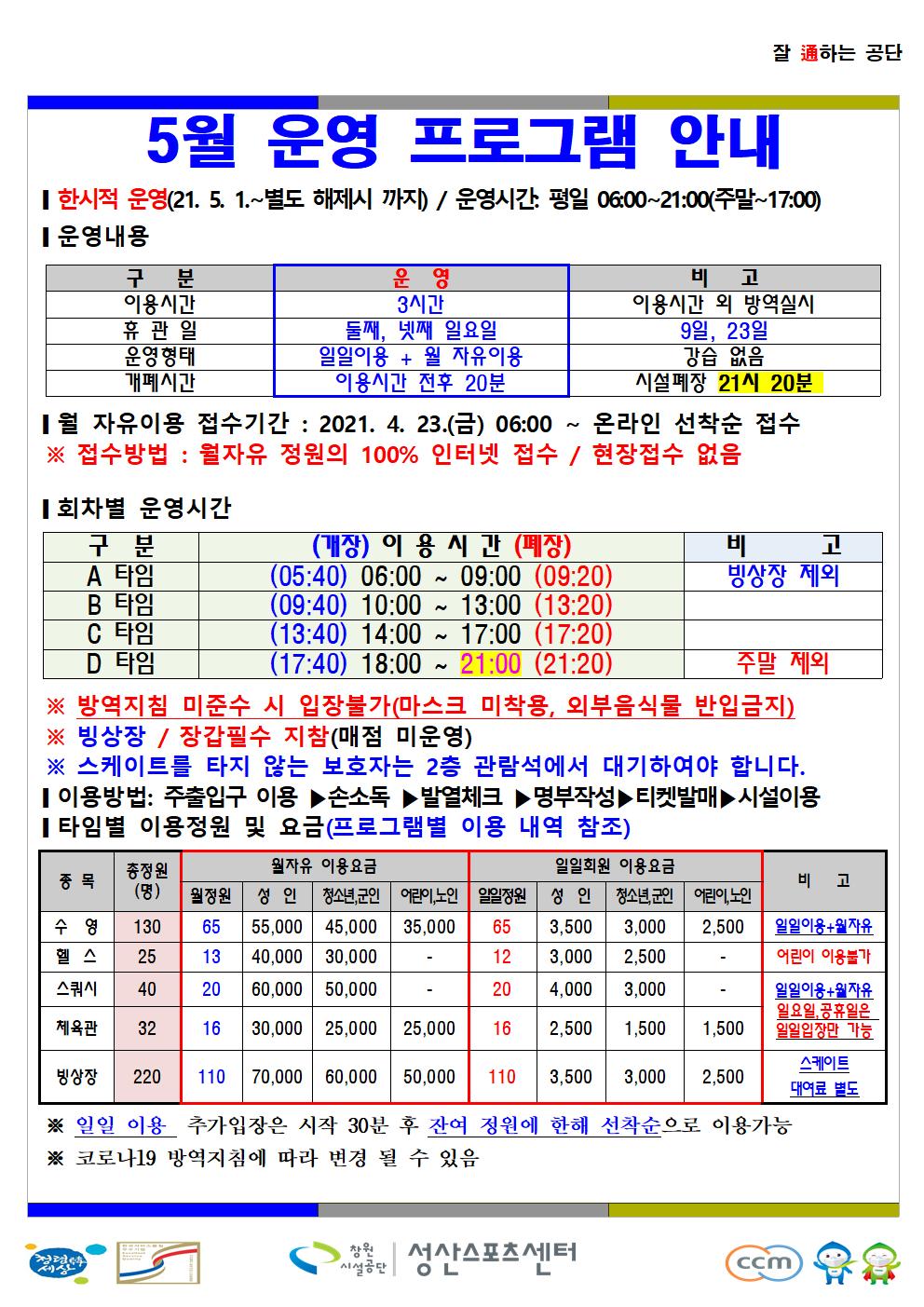 [성산스포츠센터] 5월 프로그램 안내 상세보기