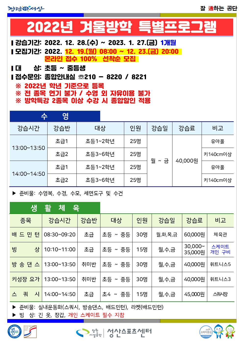 2022년 겨울방학 특별프로그램 회원모집 상세보기