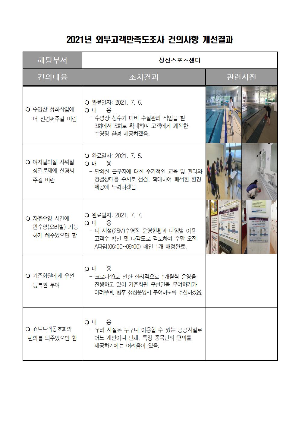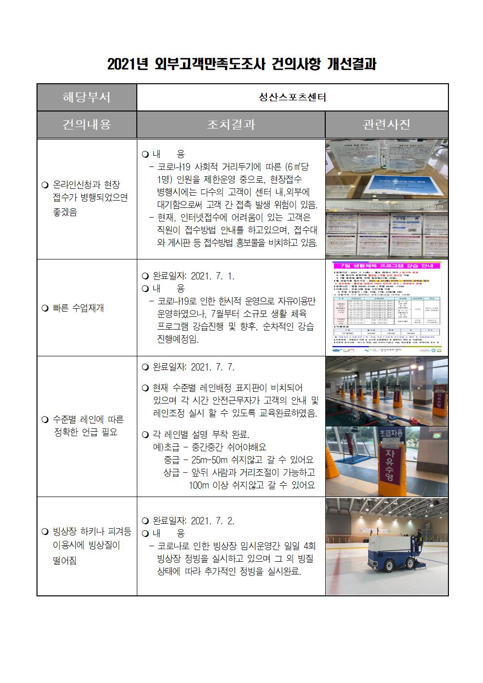2021년 외부고객만족도 조사 건의사항 개선결과
