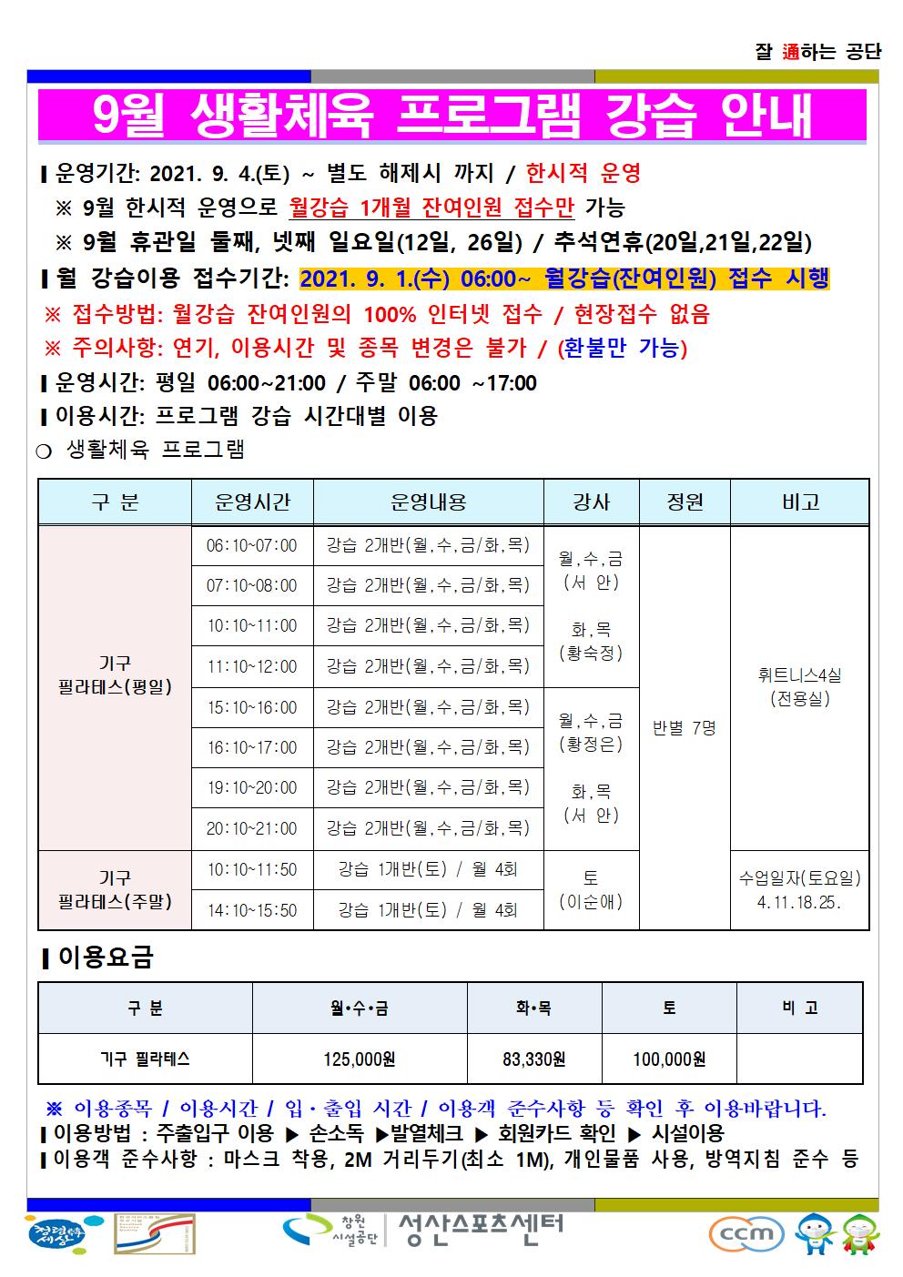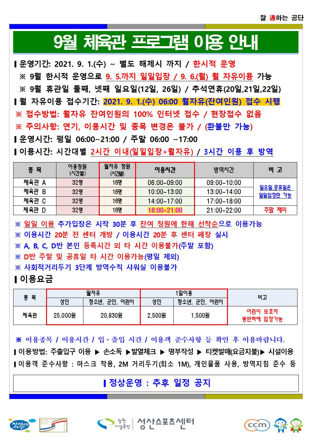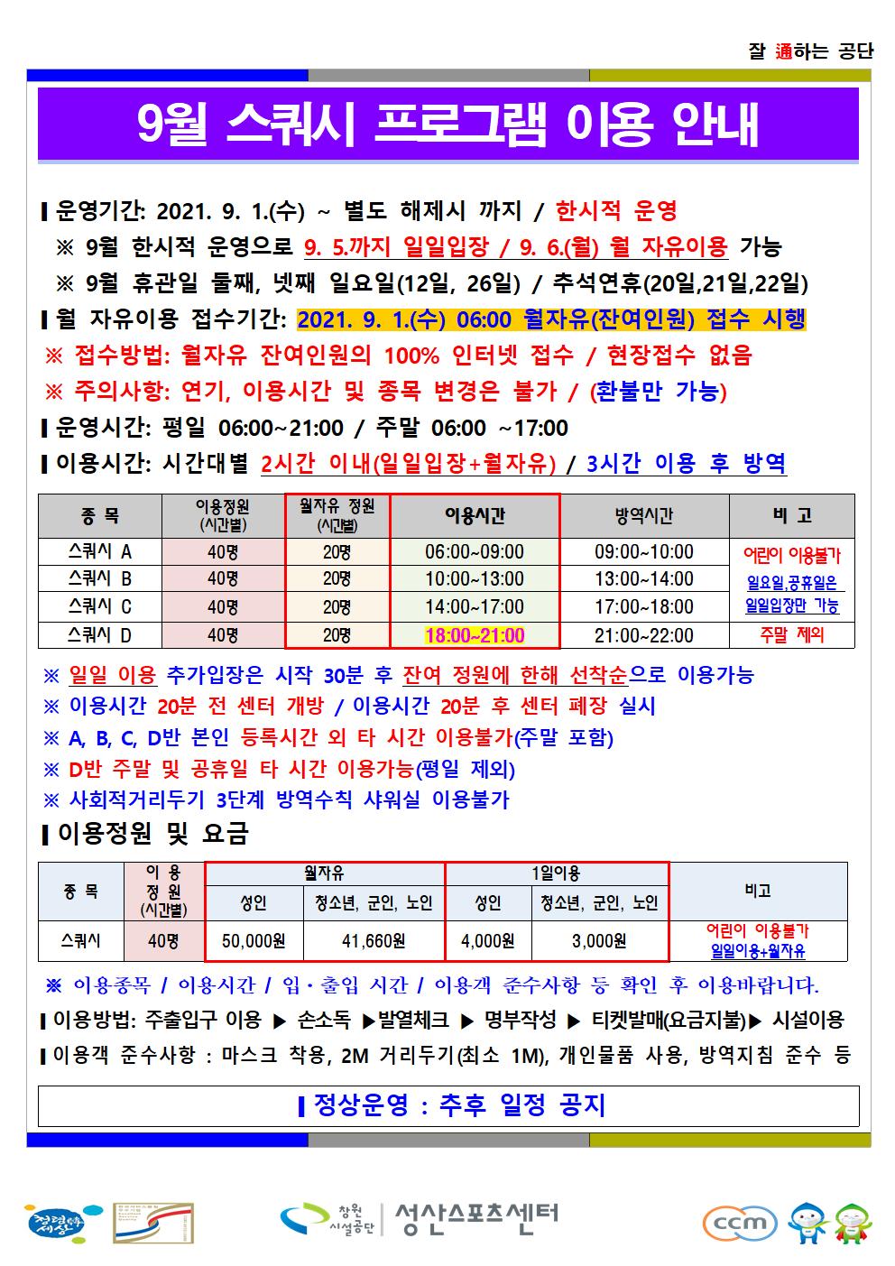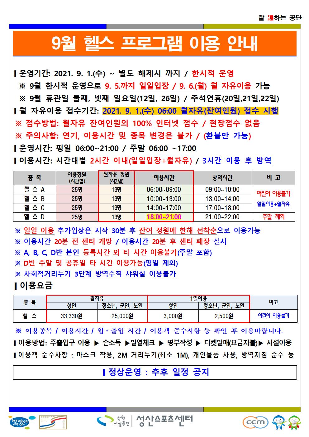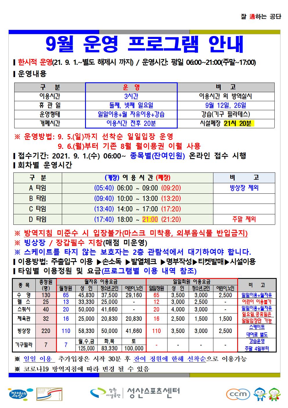 9월 한시적 운영 안내