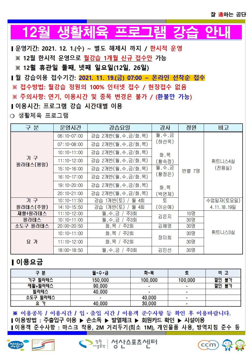12월 프로그램 운영 안내
