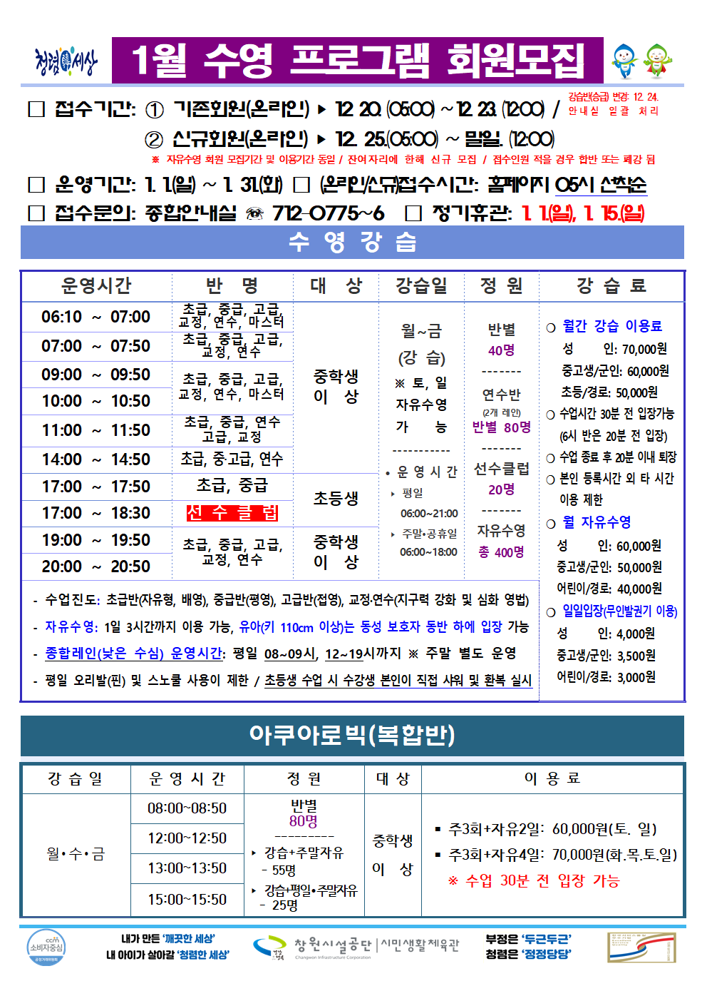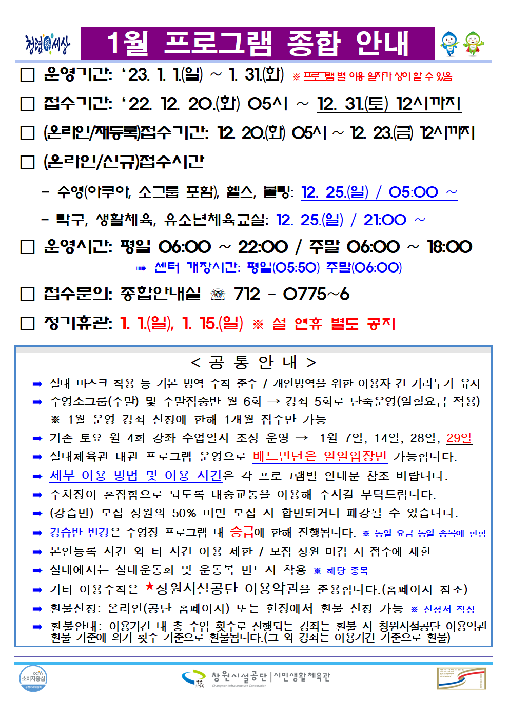 [시민생활체육관] 2022년 겨울방학 특별프로그램 회원모집(수정게시)