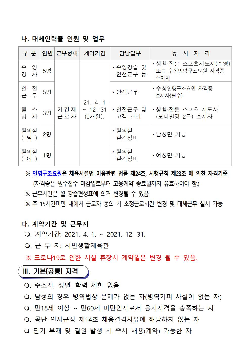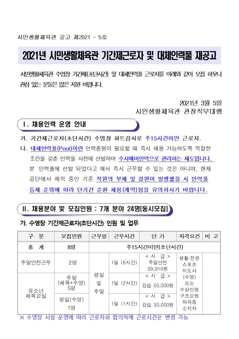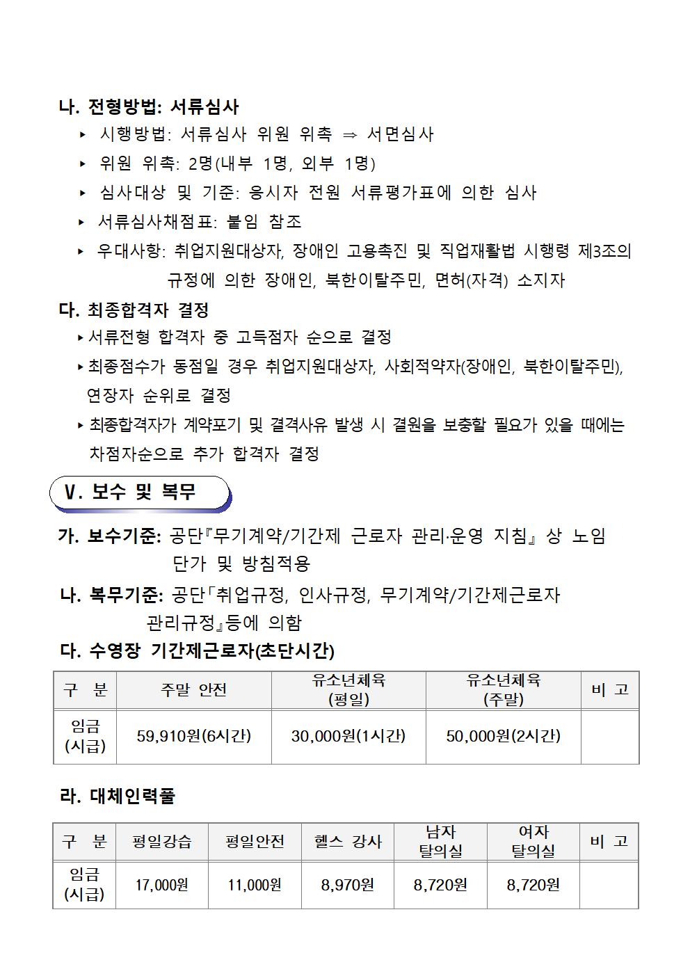 기간제근로자 및 대체인력풀 재공고 상세보기