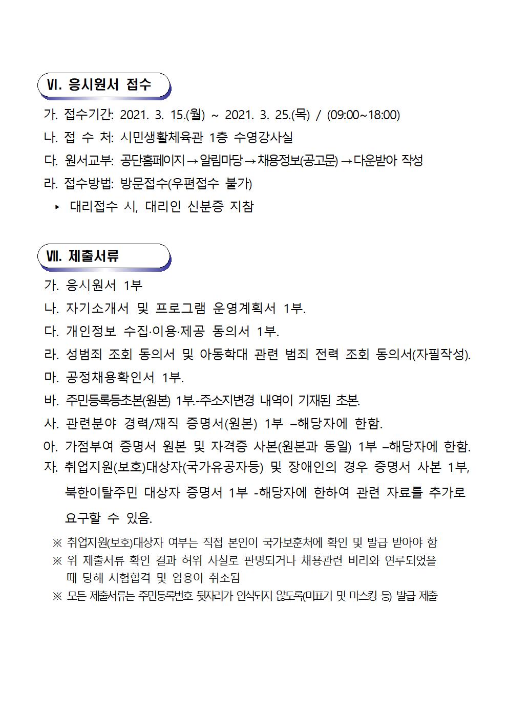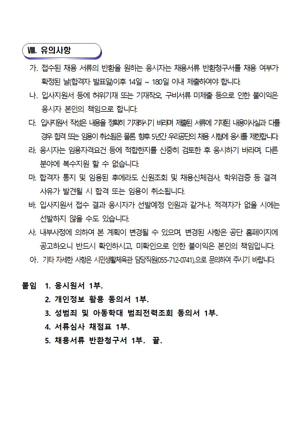 창원체력인증센터 기간제 근로자 공개경쟁 채용 재공고