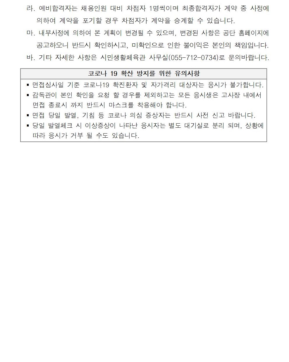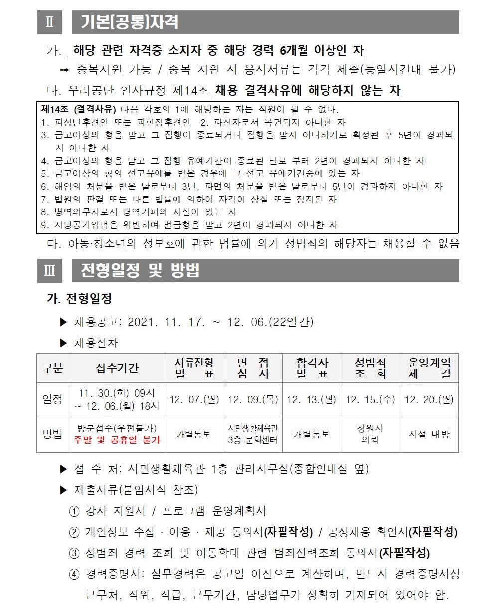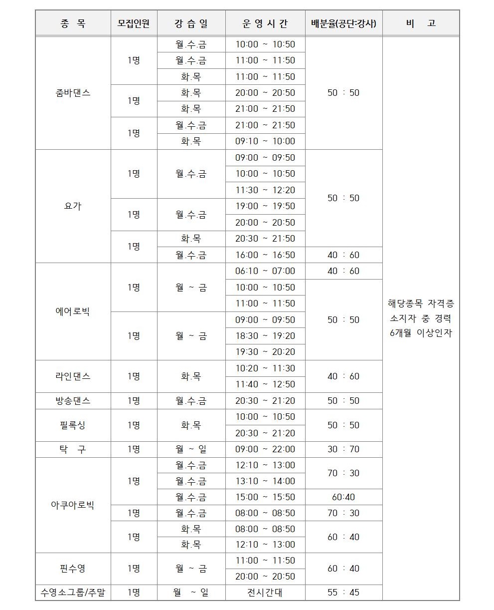 2022년 시민생활체육관 문화체육 도급강사 채용 공고