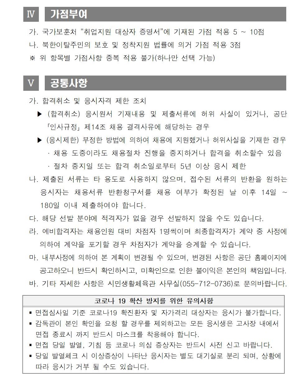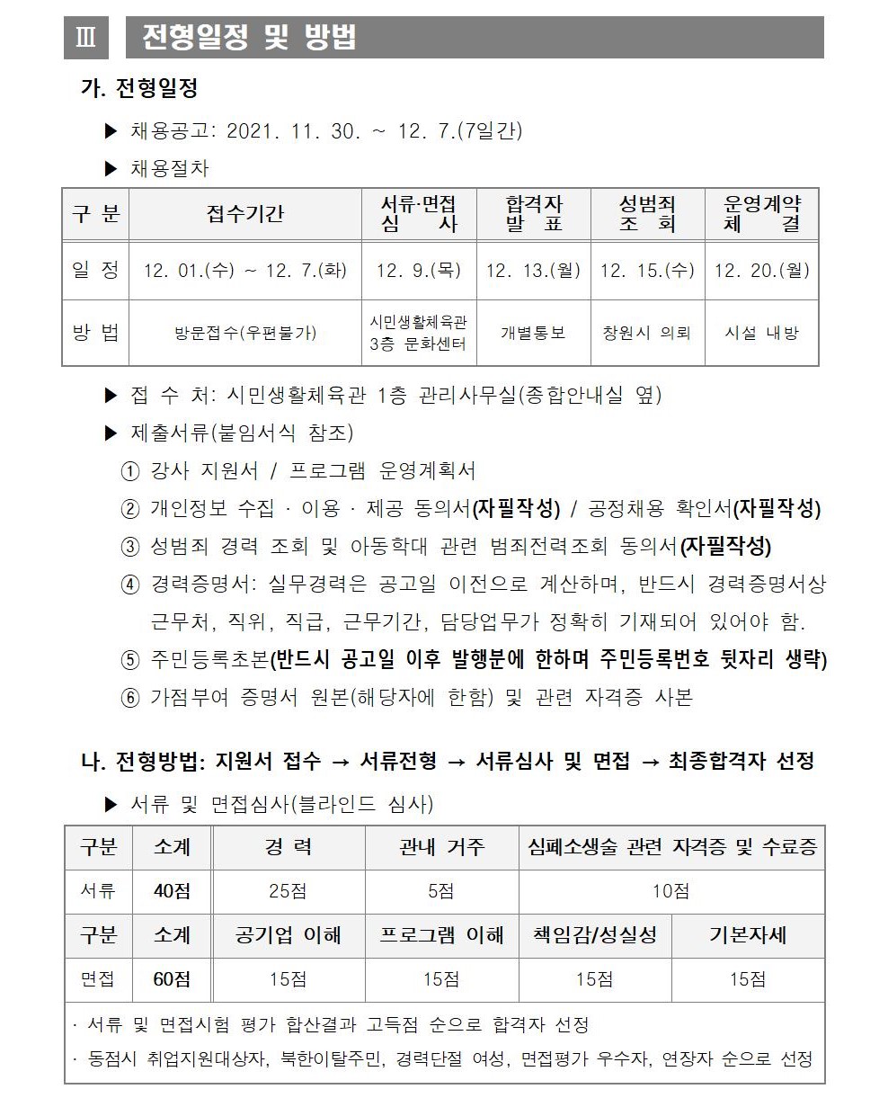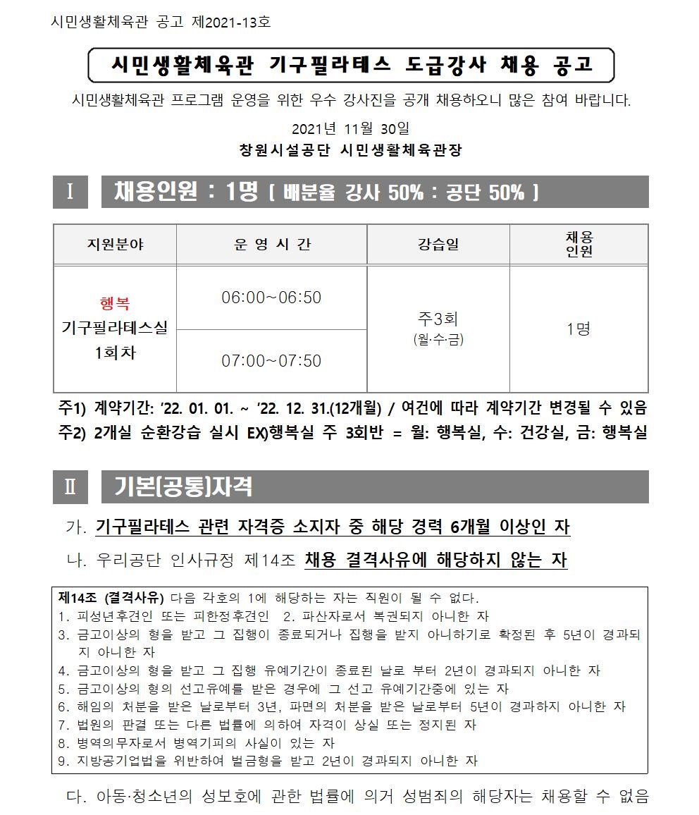 2022년 시민생활체육관 기간제 및 대체인력풀 채용 재공고