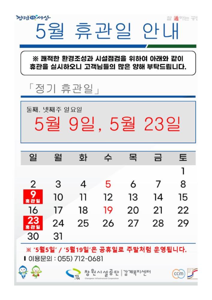 5월 정기휴관일 안내 상세보기