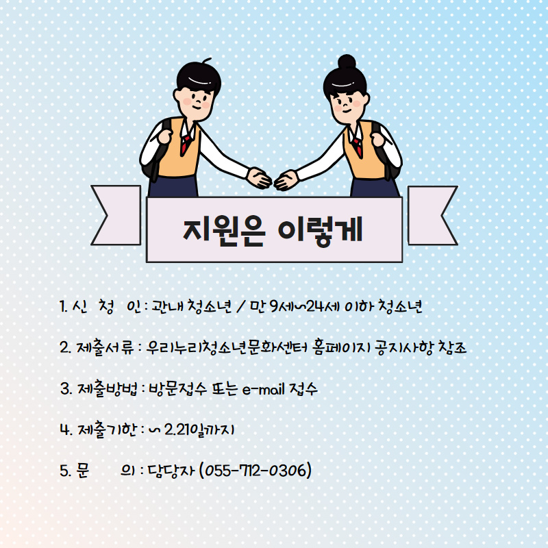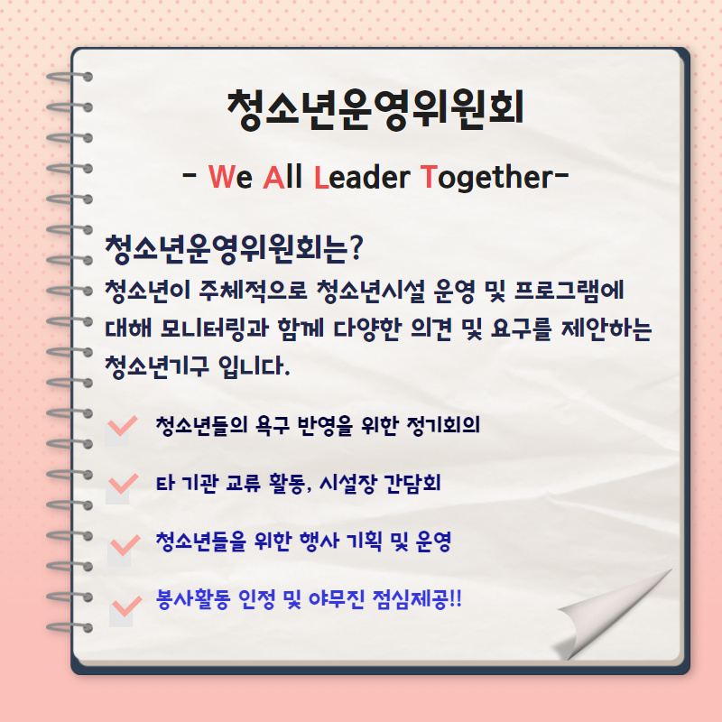 봉사활동 시간과 청소년들의 역량강화를 위한 활동에 많은 관심 바랍니다.