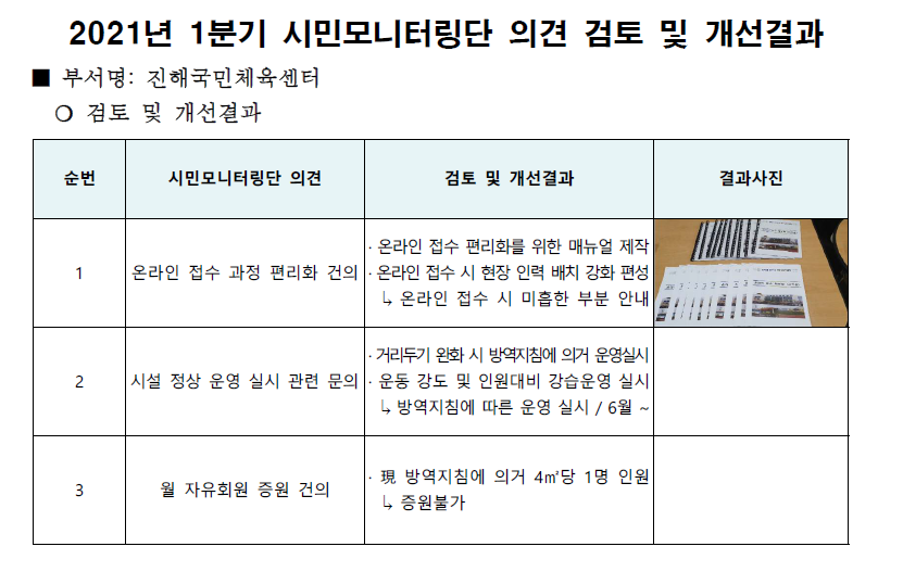 2021년 1분기 시민모니터링단 의견 검토 및 개선결과