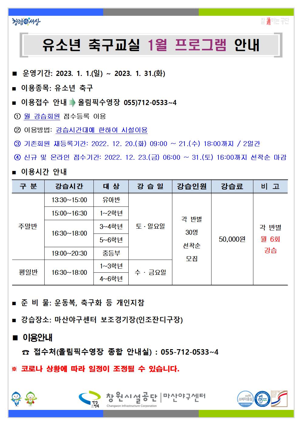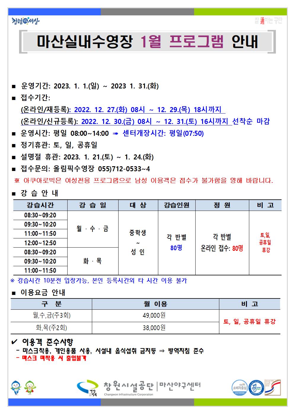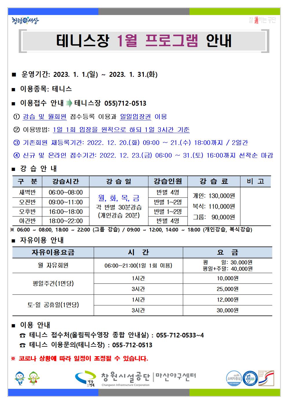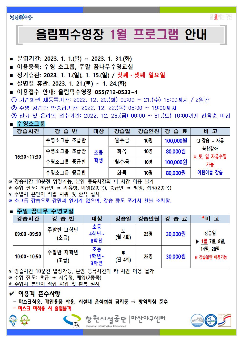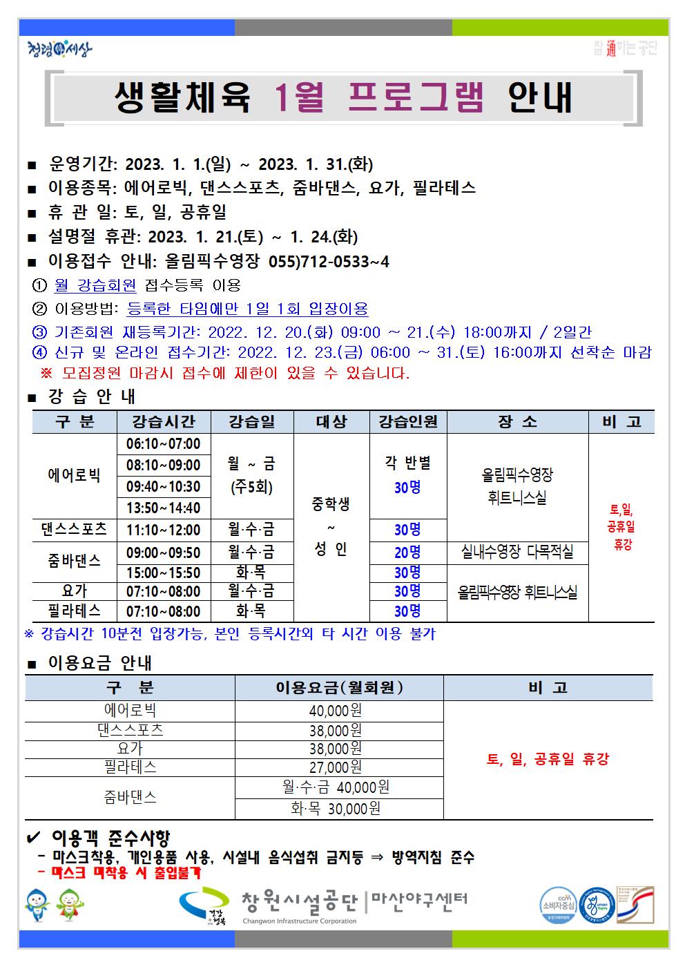 2023년 1월 프로그램 운영 안내 입니다.