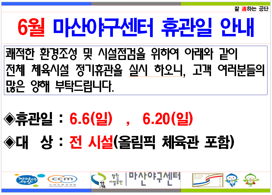 마산야구센터 체육관(배드민턴) 6월 운영 안내