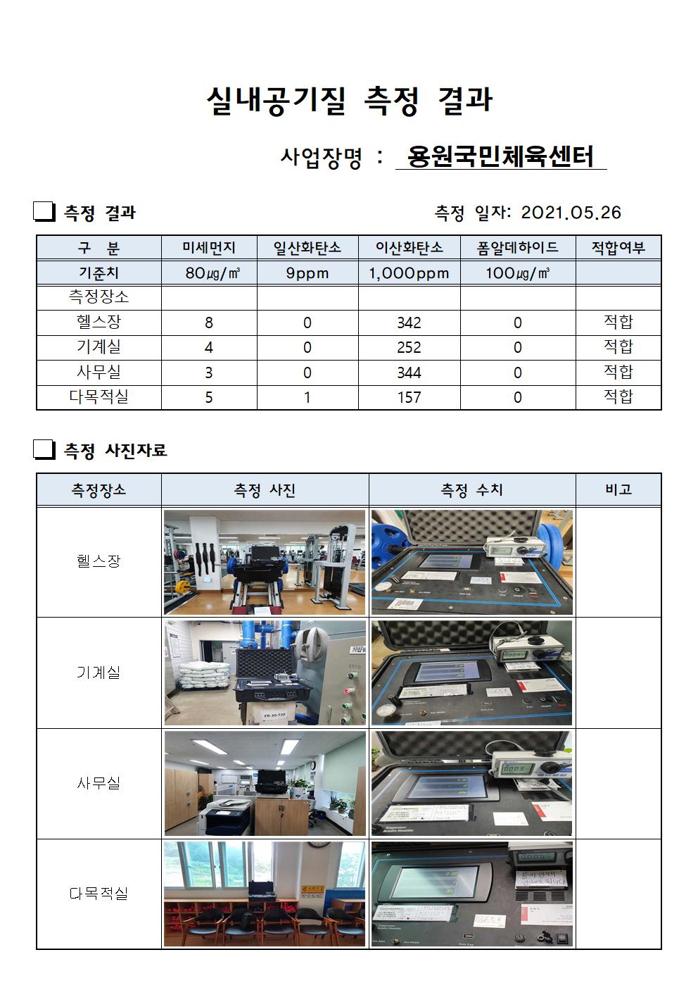 용원국민체육센터 상반기 실내 공기질 측정 결과 상세보기