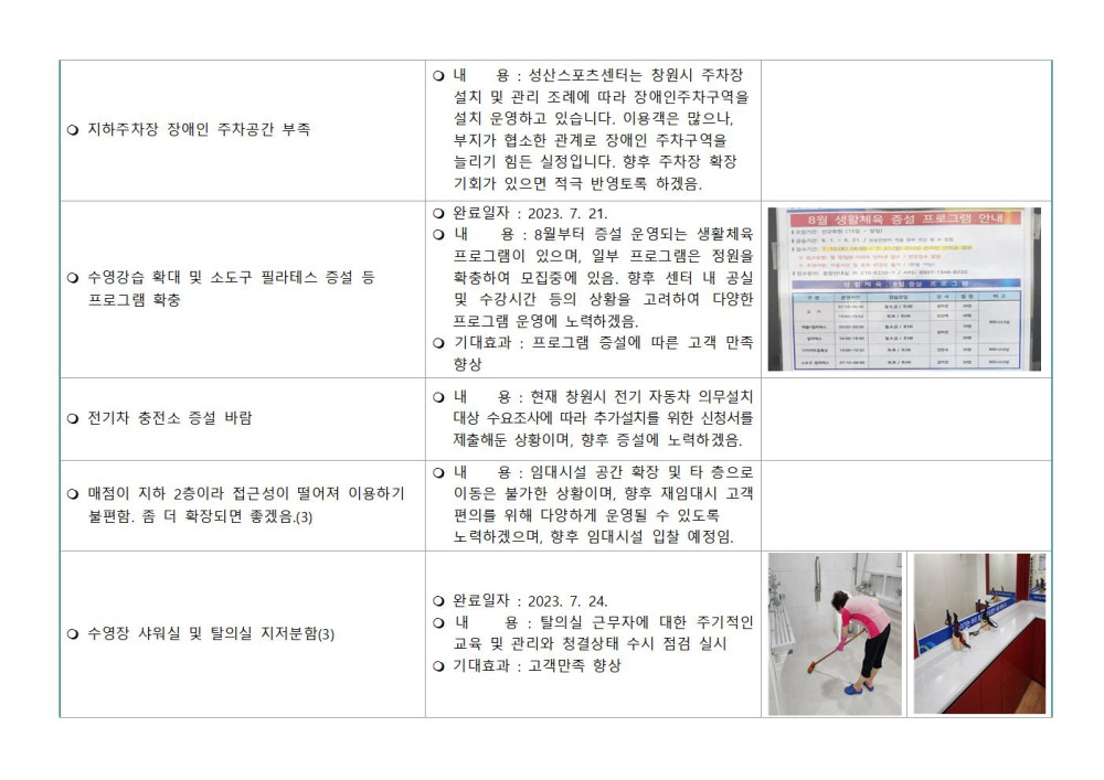 2023년 외부고객만족도 조사 건의사항 및 불친절 사례 개선결과 상세보기
