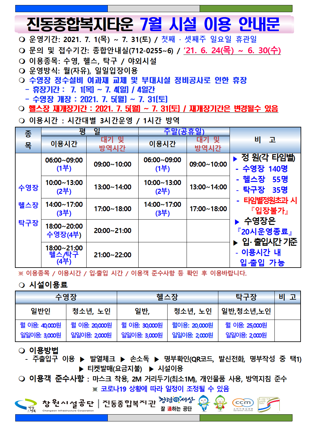 7월 시설이용 안내