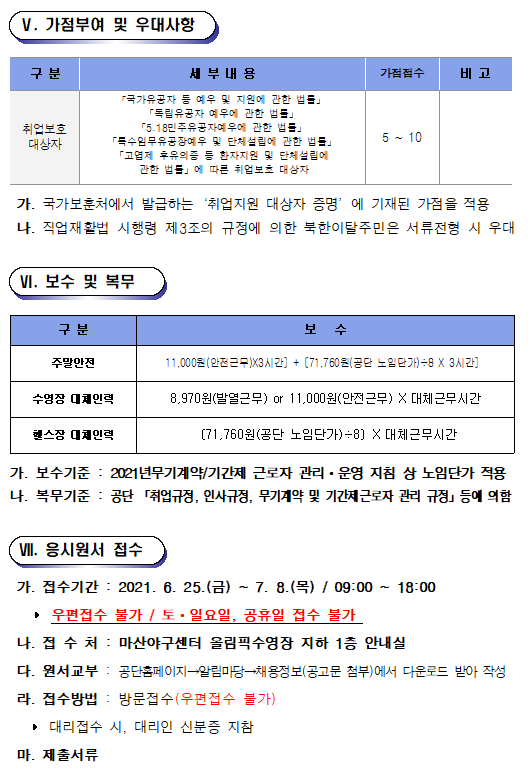 마산야구센터 수영장 주말근무자 및 대체인력풀 모집 공고 상세보기