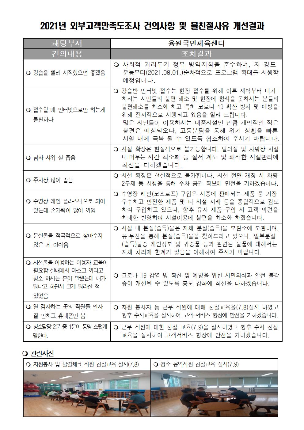 2021년 외부고객만족도조사 건의사항 및 불친절사유 개선결과