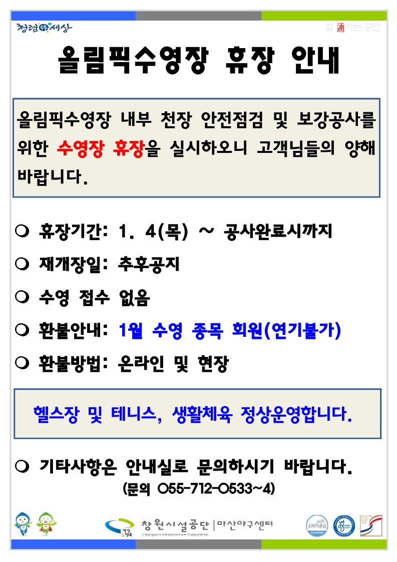 마산올림픽수영장 휴장 안내(수정게시) 상세보기