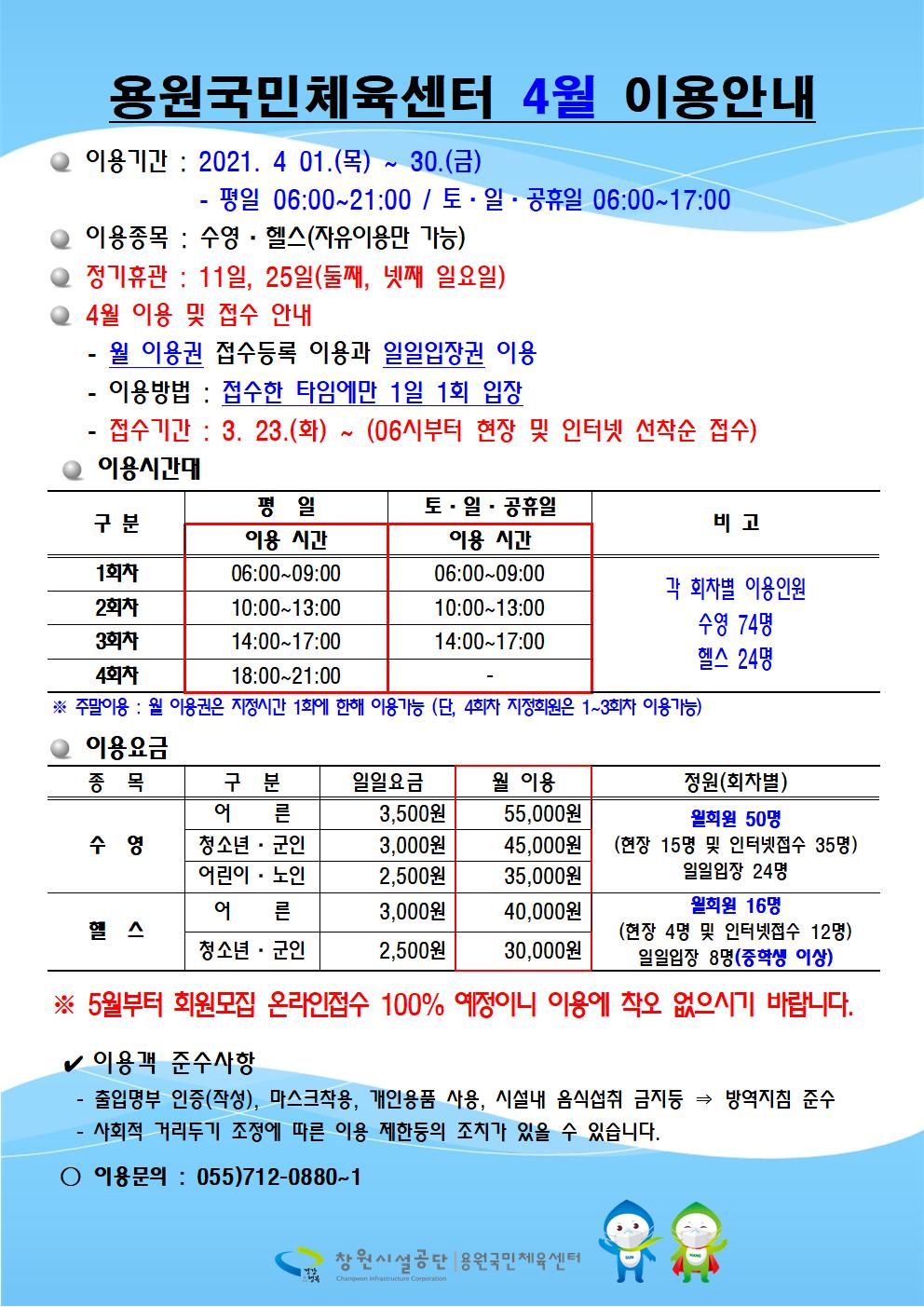 [용원국민체육센터]4월 이용안내