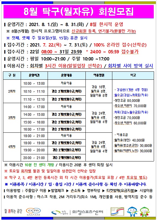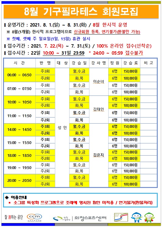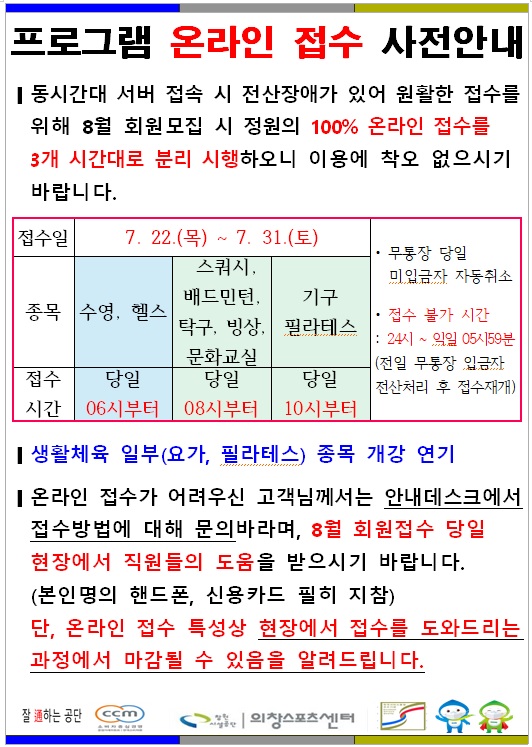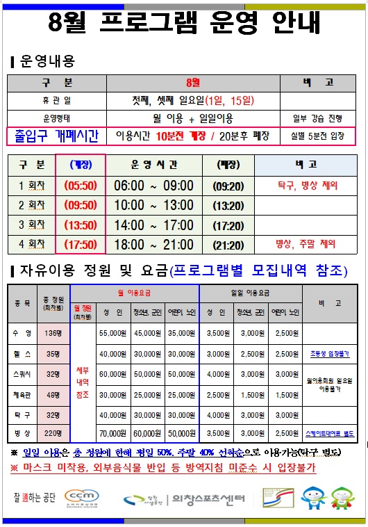 8월 한시적 프로그램 운영 안내