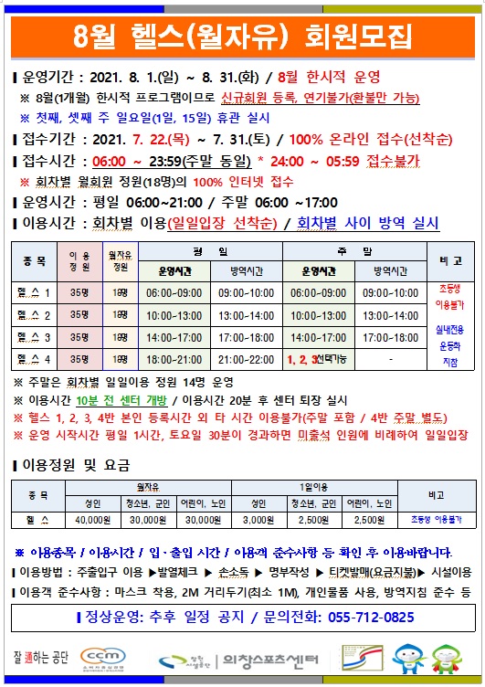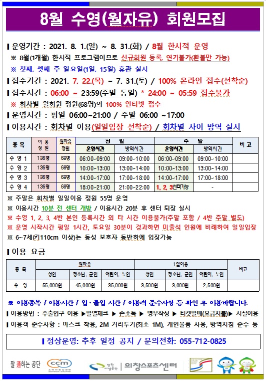 7월 이용인원 정원조정 안내