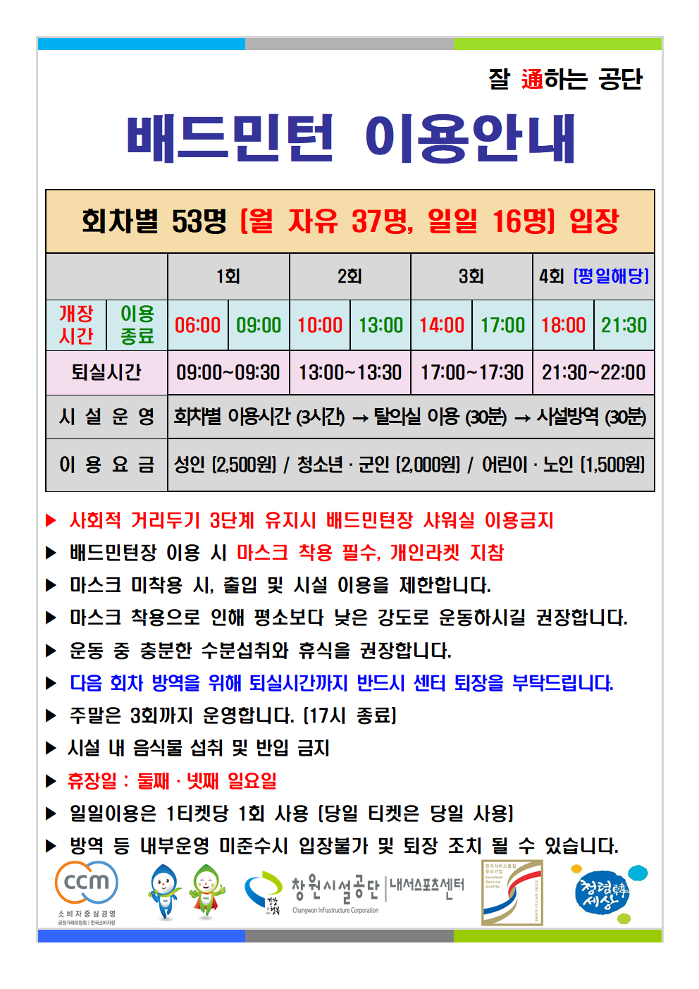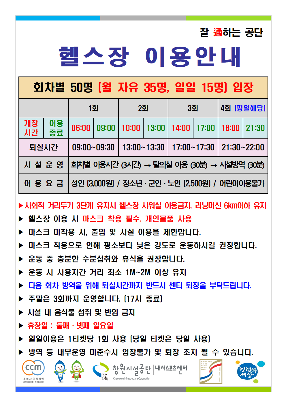 의창노인복지관 3단계 격상에 따른 이용수칙 변경 안내
